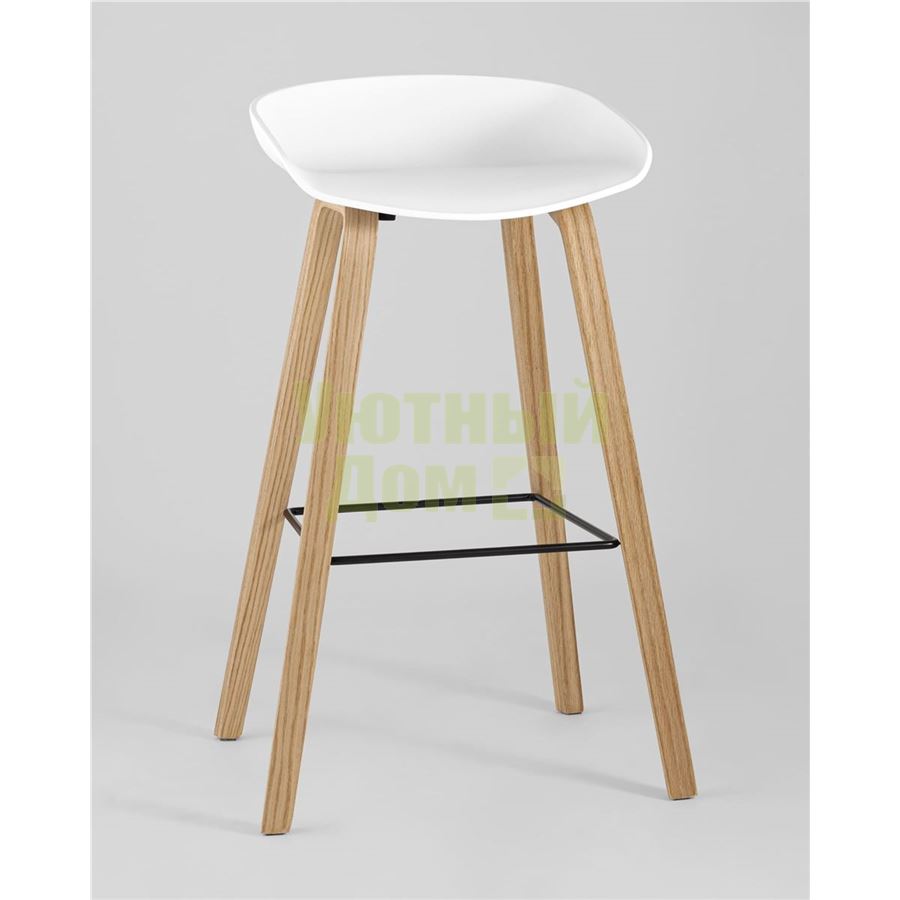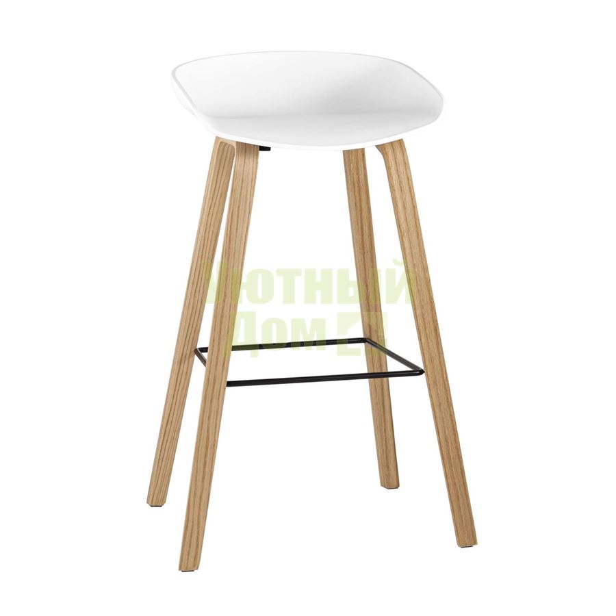 Купить Барный стул Libra БЕЛЫЙ, белый пластик, ножки оттенка естественного дерева