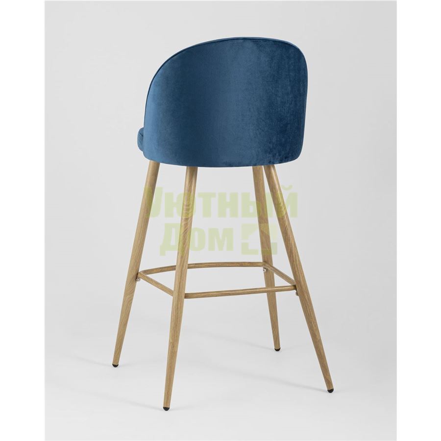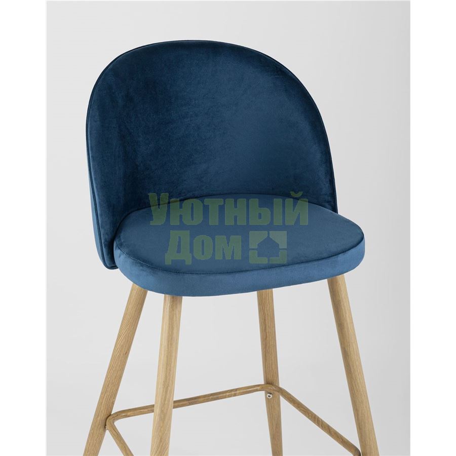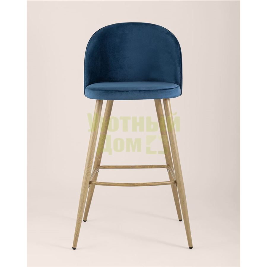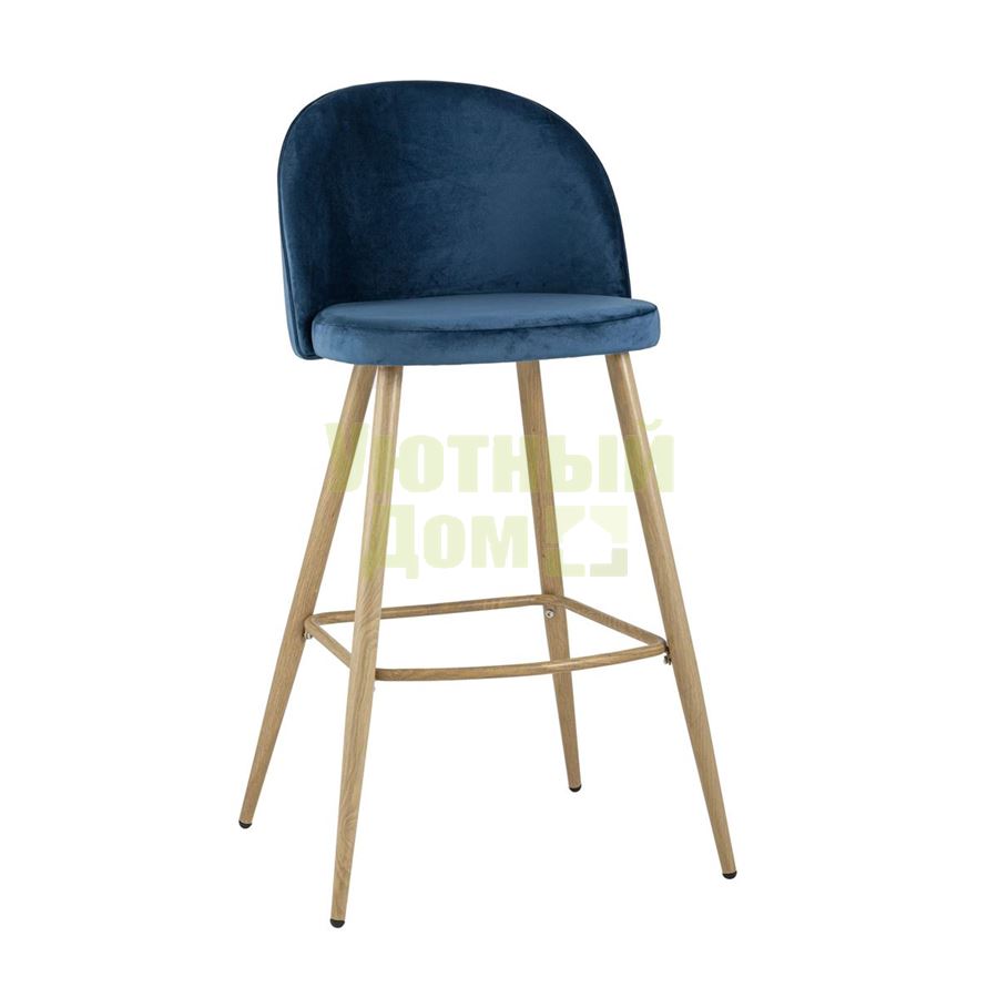 Купить Барный стул Лион цвет голубой обивка велюр, светлые ножки под дерево