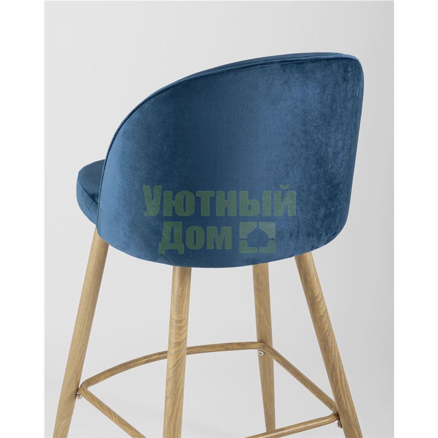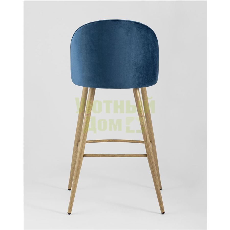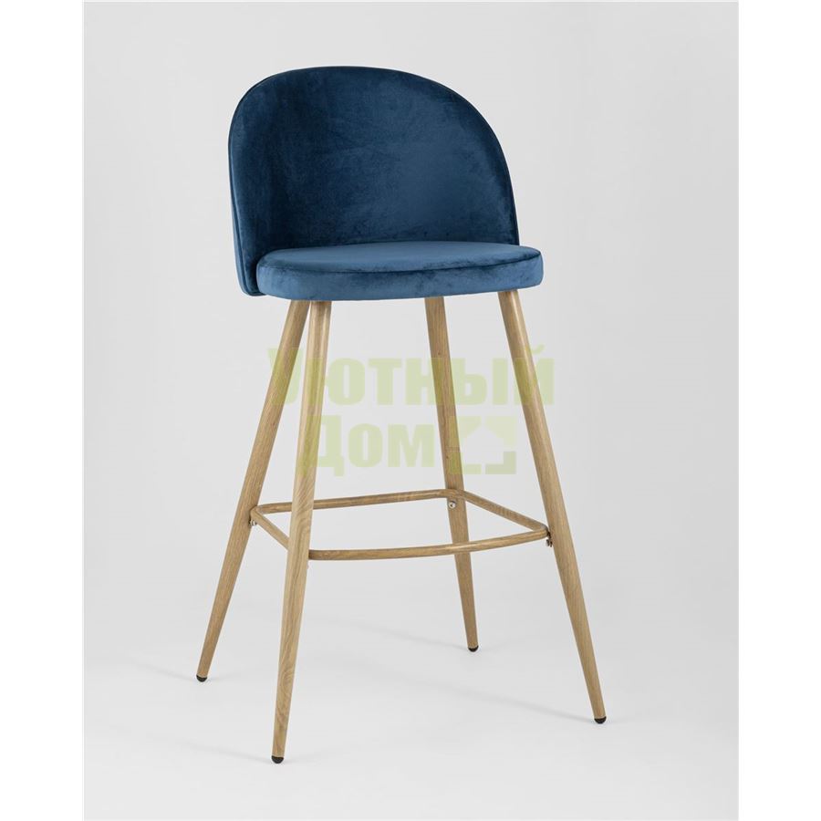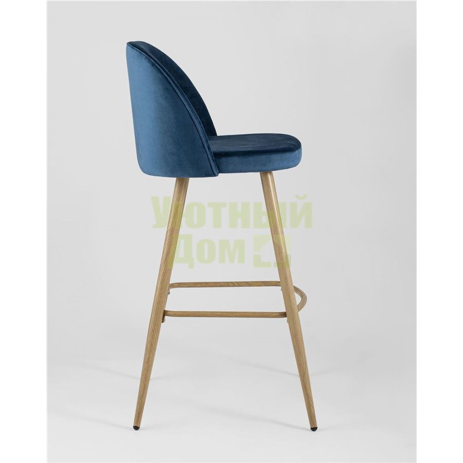 Купить Барный стул Лион цвет голубой обивка велюр, светлые ножки под дерево