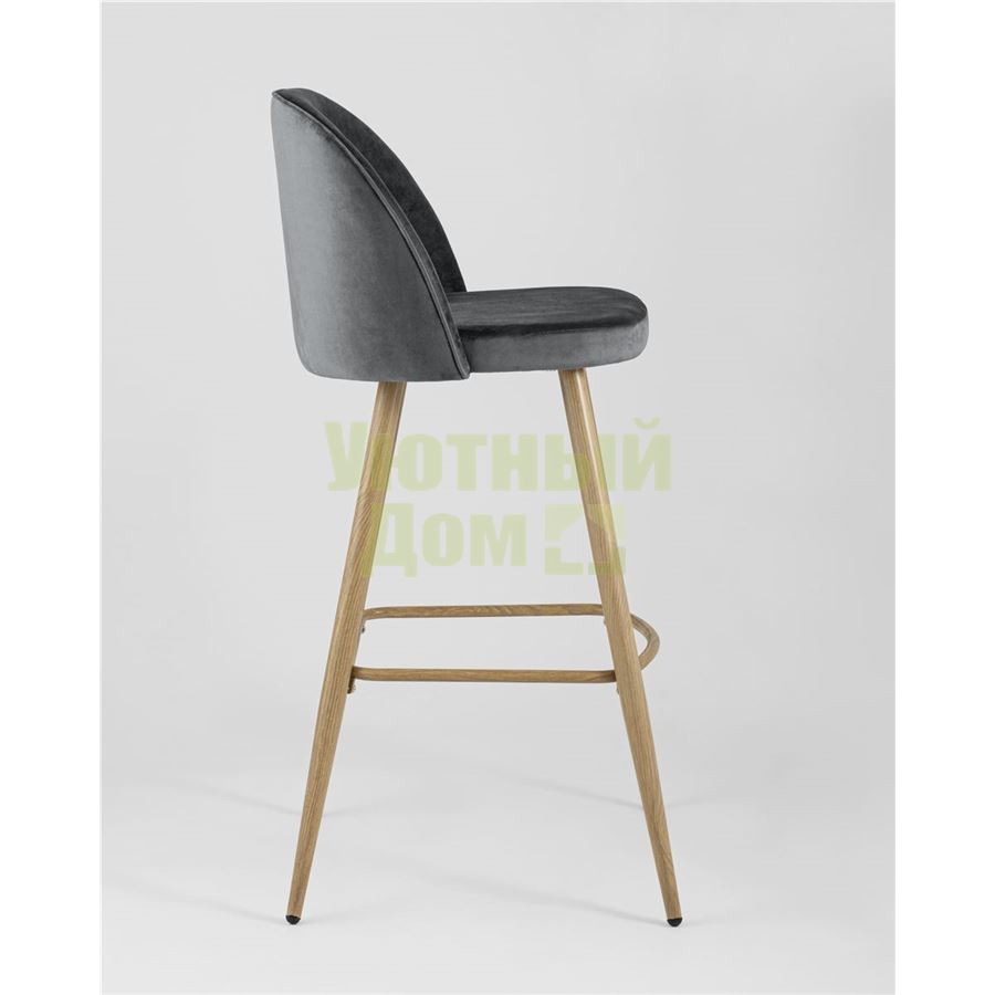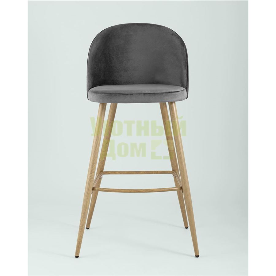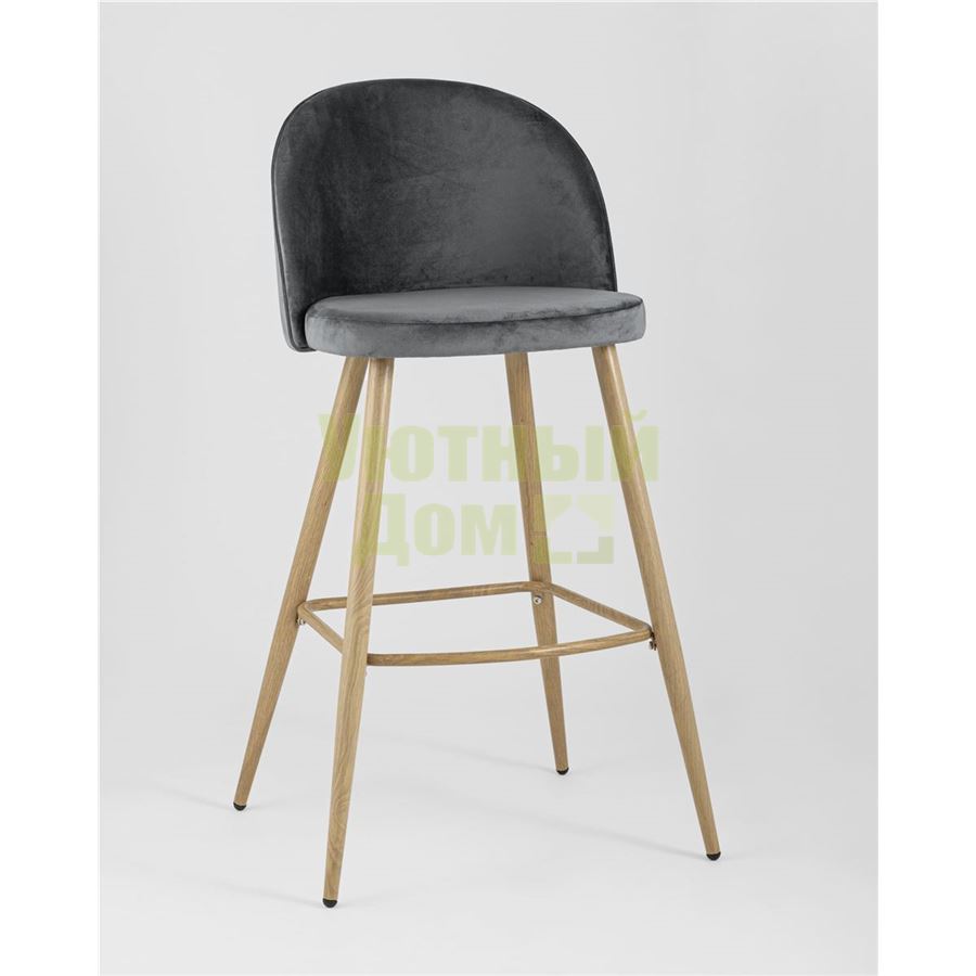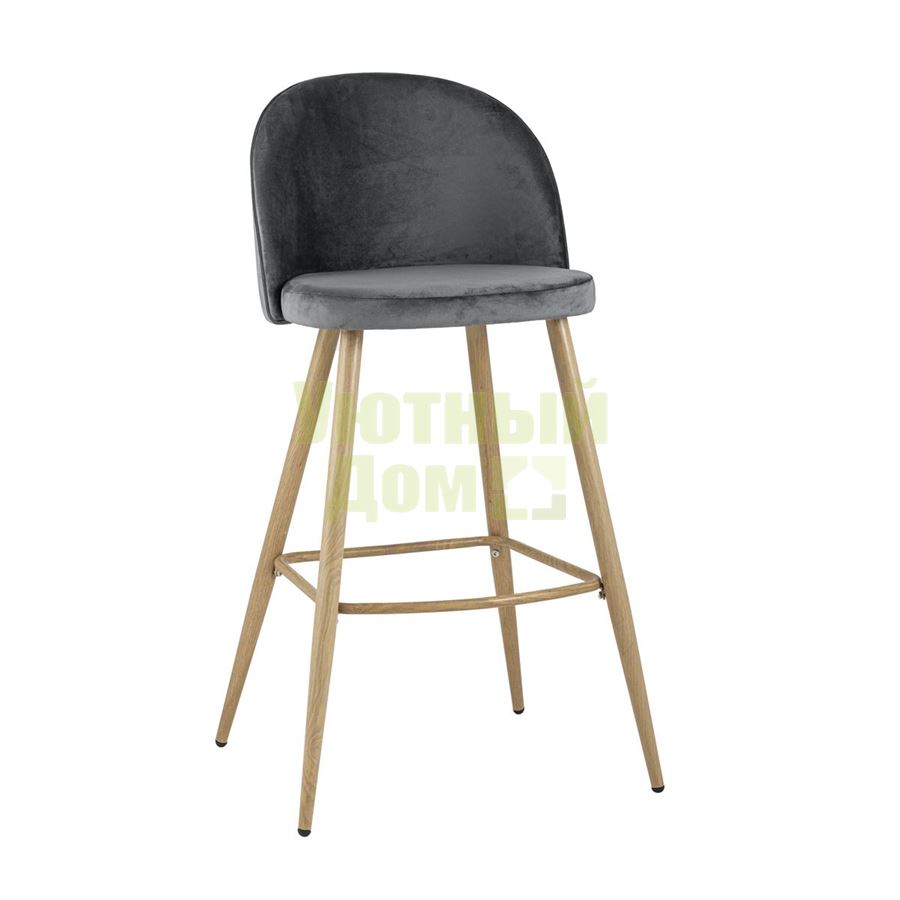 Купить Барный стул Лион обивка велюр серого цвета, ножки металлические под светлое дерево