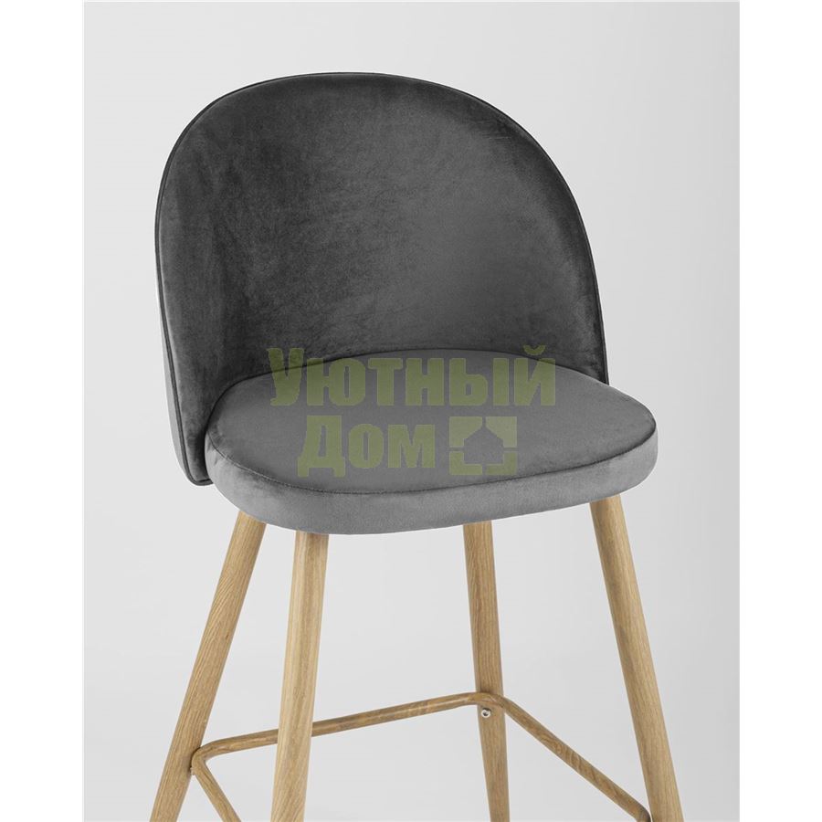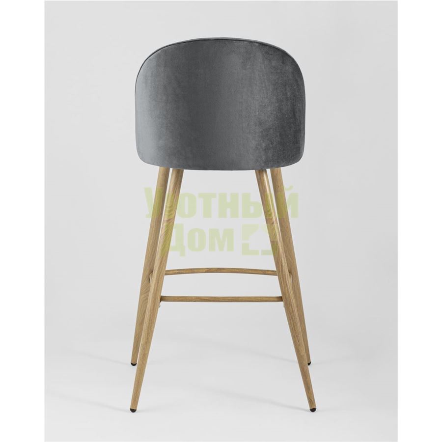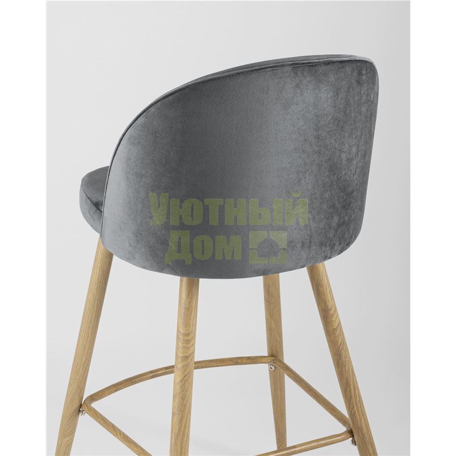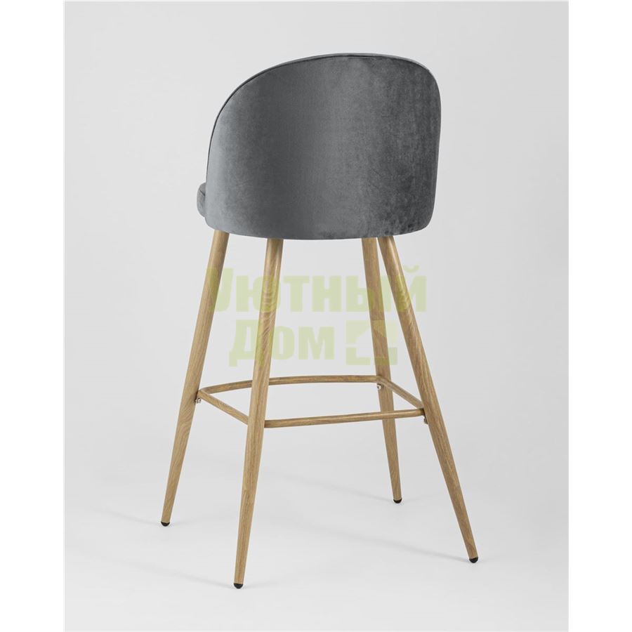 Купить Барный стул Лион обивка велюр серого цвета, ножки металлические под светлое дерево