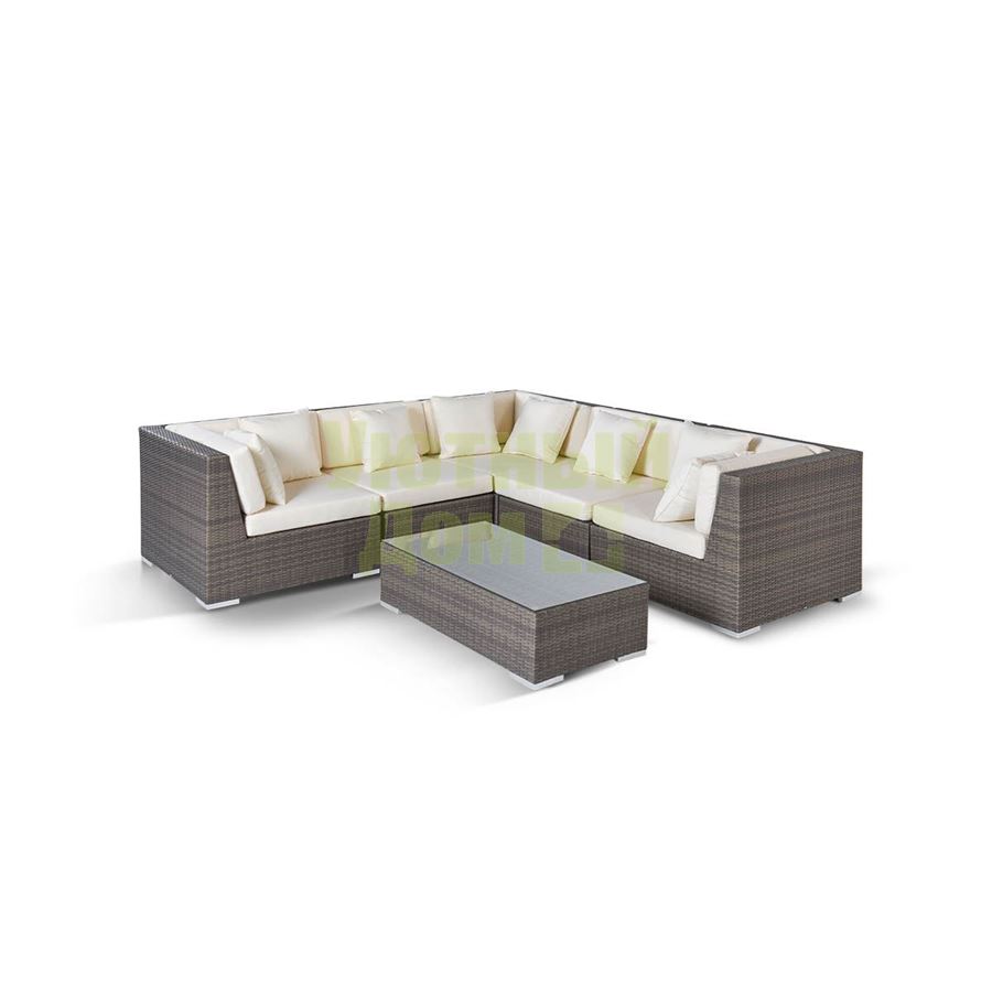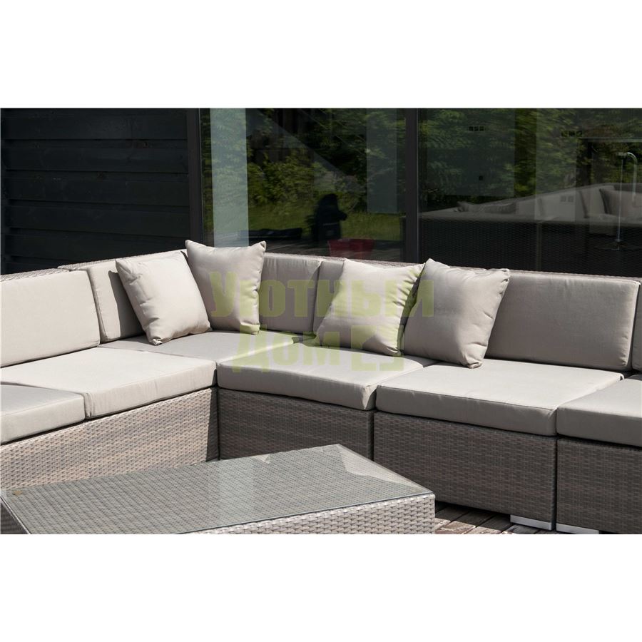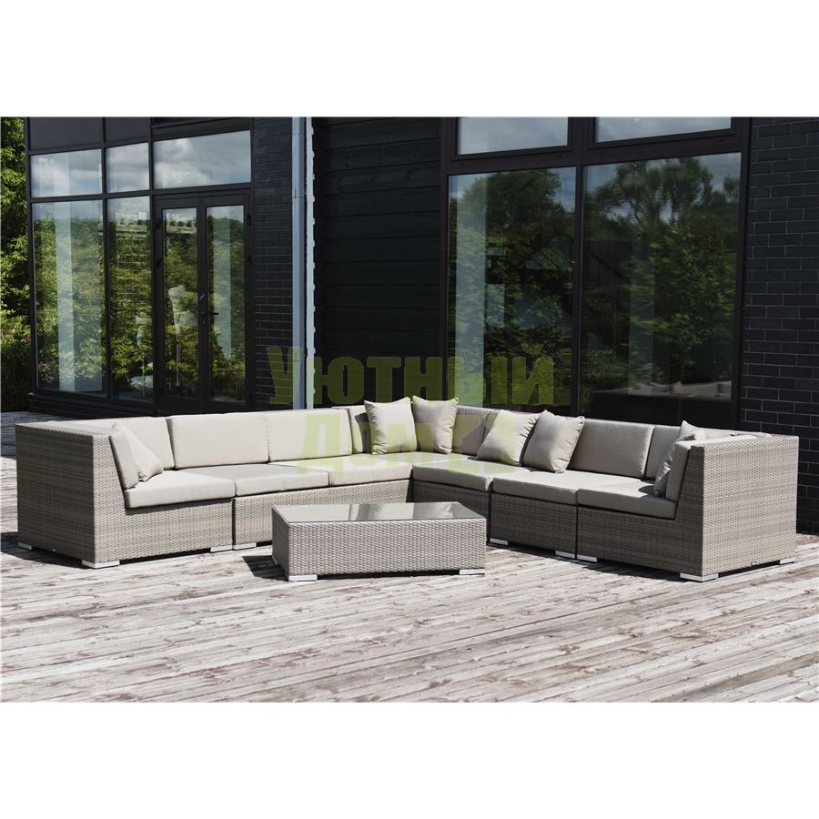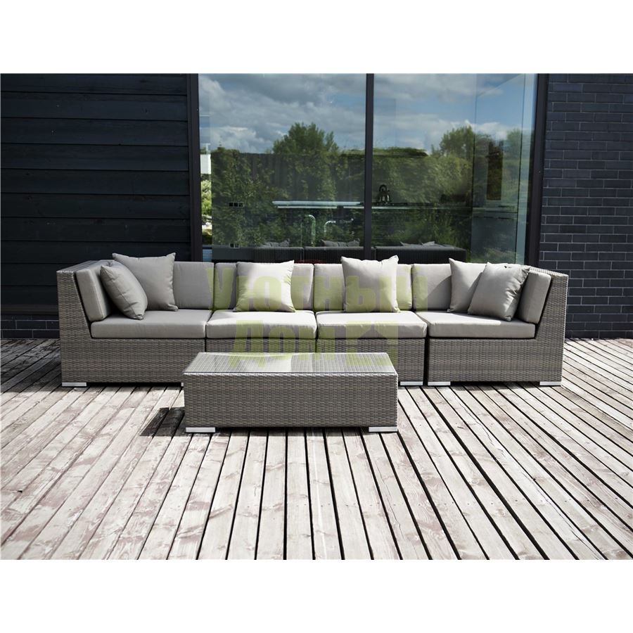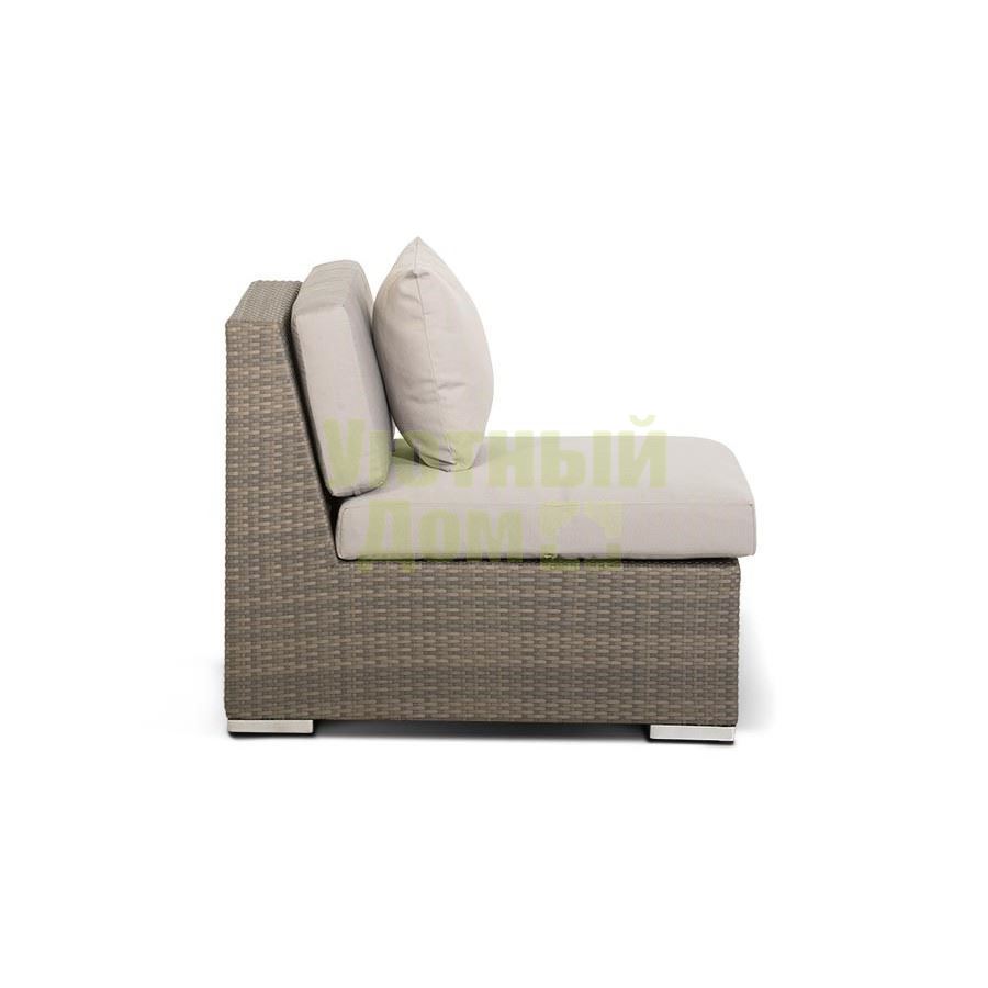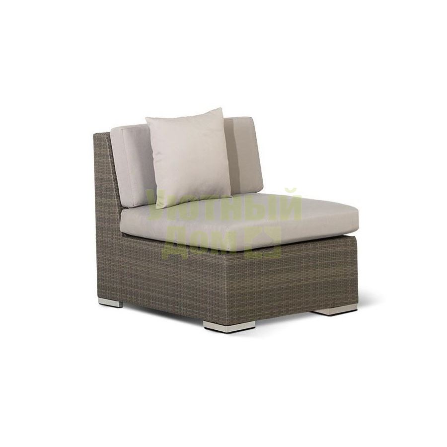 Модуль прямой в комплекте с подушками, алюминиевый каркас, искусственный ротанг, плоское плетение, размеры 700х900х730, цвет серо - коричневый