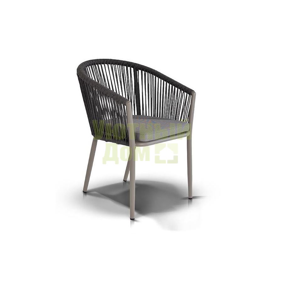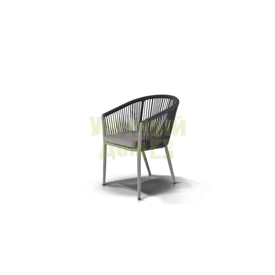 Стул "Бордо", алюминиевый каркас, оплетен вручную эластичными синтетическими лентами из высокопрочных полиэфирных волокон, в комплекте с подушкой, размеры 570X620X800, цвет темно-серый