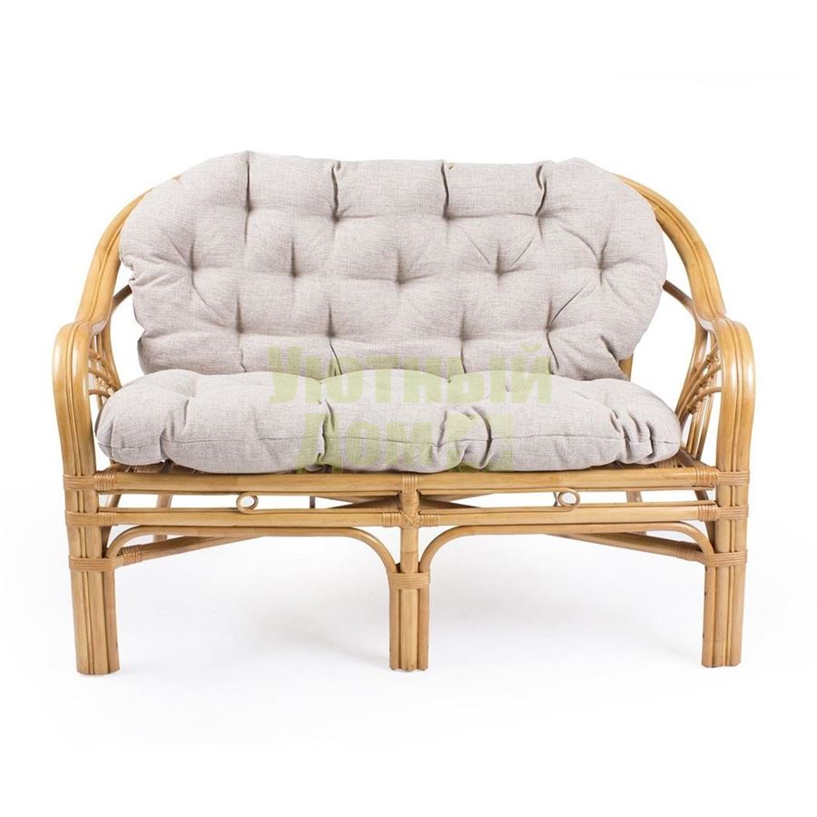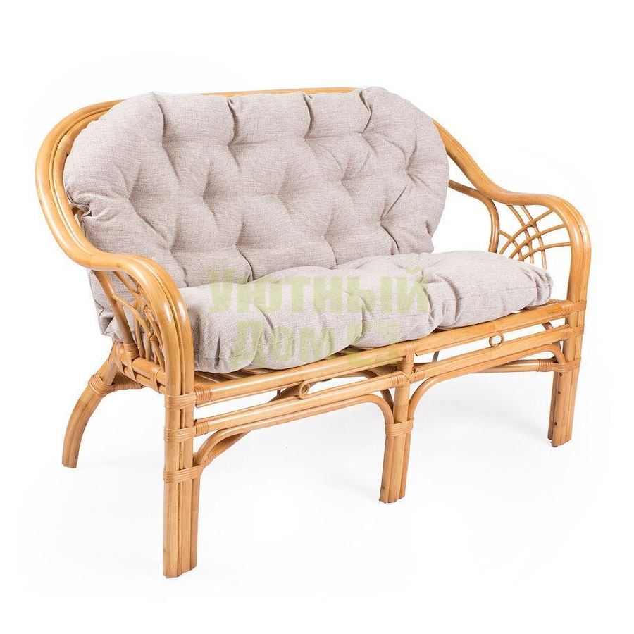 Диван Roma - выполнен из качественных материалов: каркас из натурального ротанга с мягкой тканевой подушкой. Ротанг - экологичный, прочный, гибкий материал, из которого создают по-настоящему необычные предметы мебели. Плетение из ротанга отлично смотрится, мягкая подушка крепится к каркасу, цвет которого может быть трех вариантов: коньяк, орех, золотой мед.