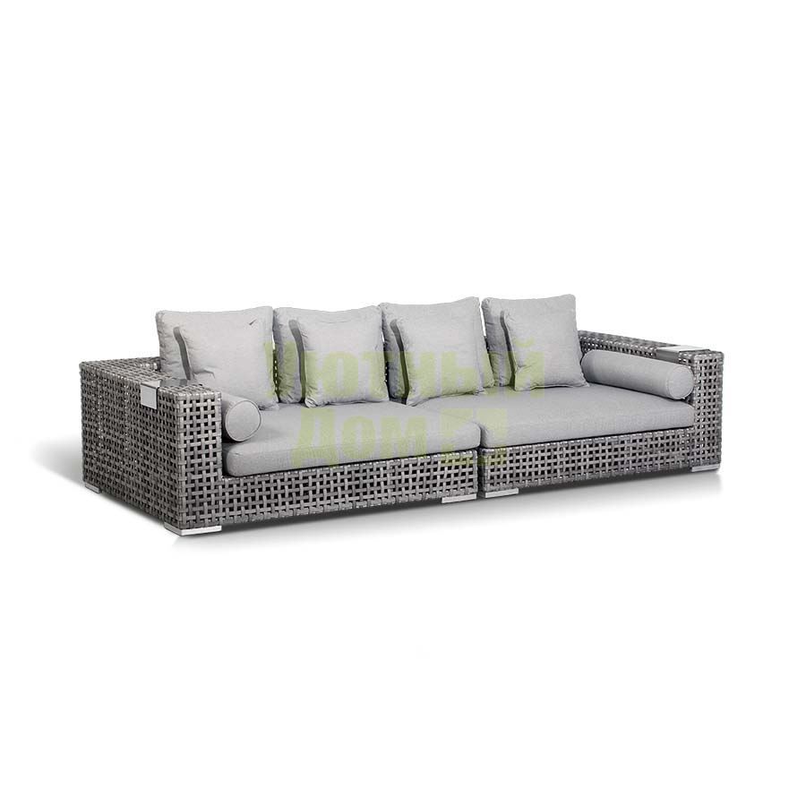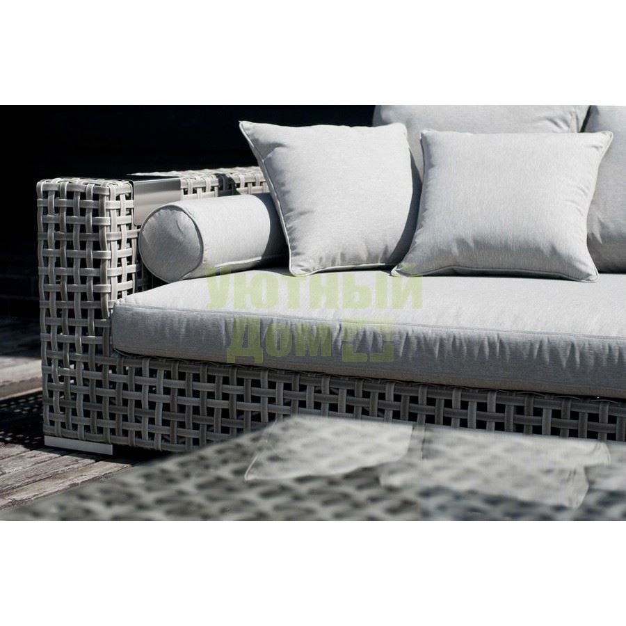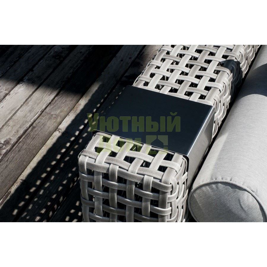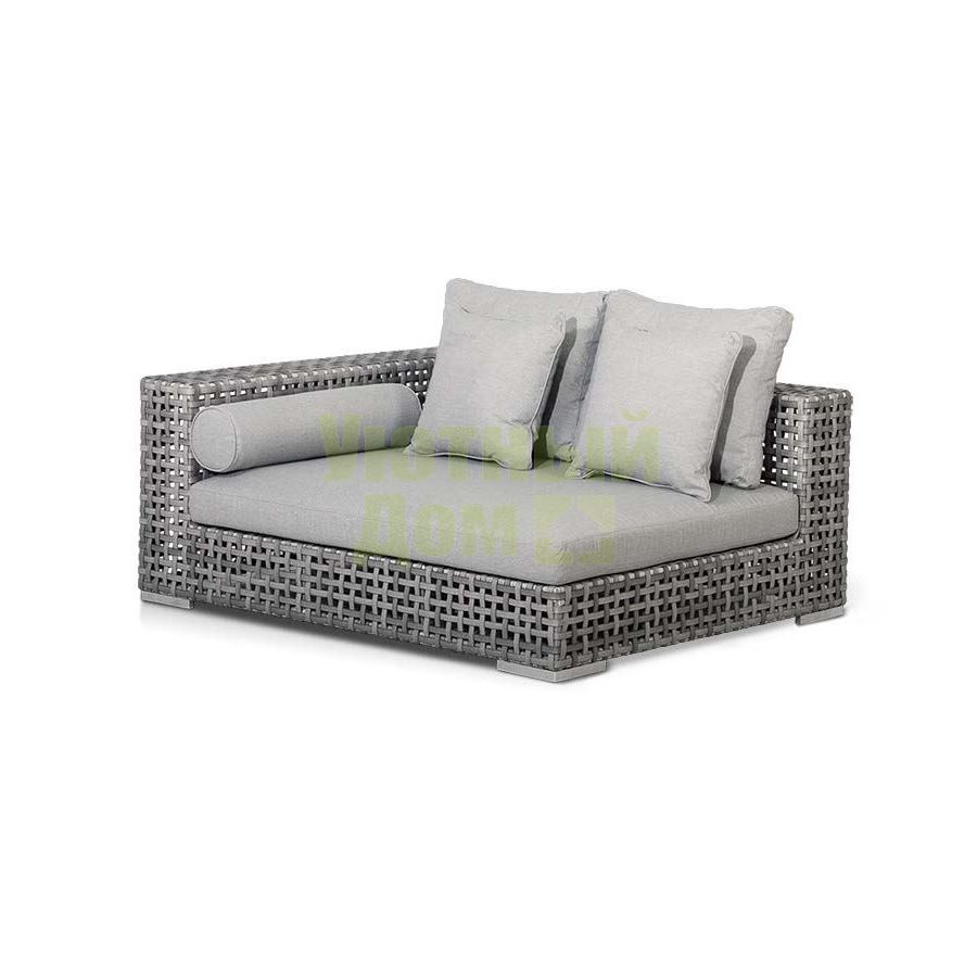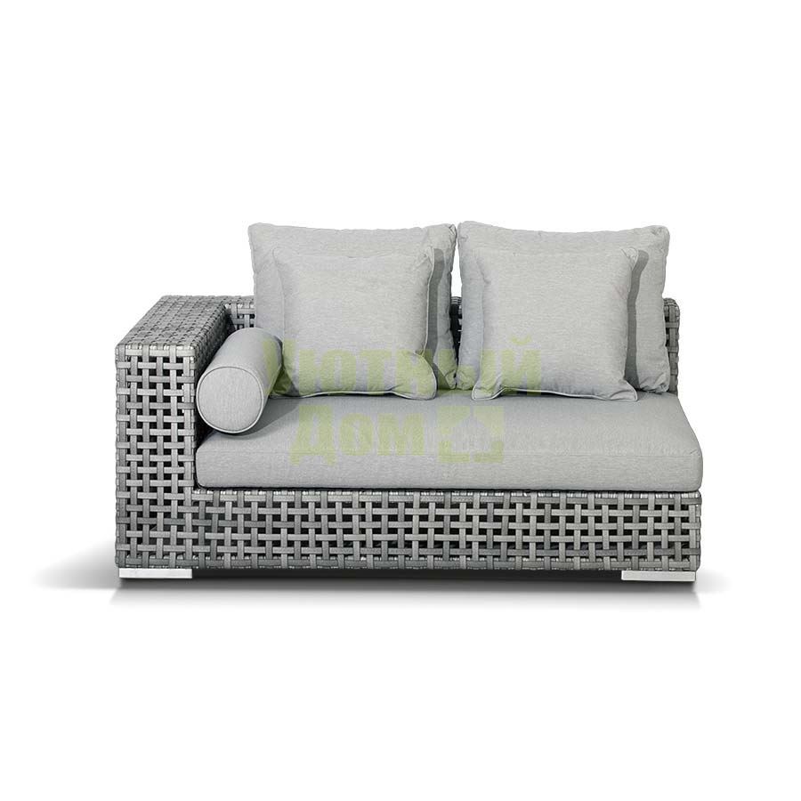 "Канти", модуль угловой правый в комплекте с подушками, алюминиевый каркас, плоский искусственный ротанг, ручное плетение, размеры 1530x1210x610, цвет серый