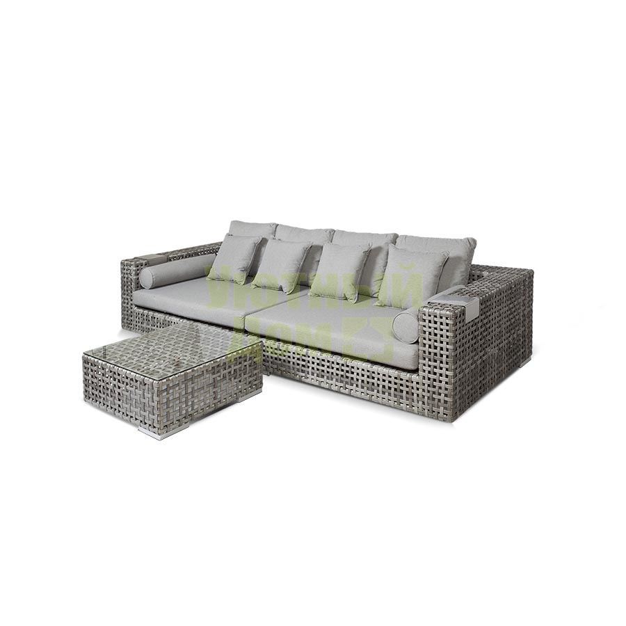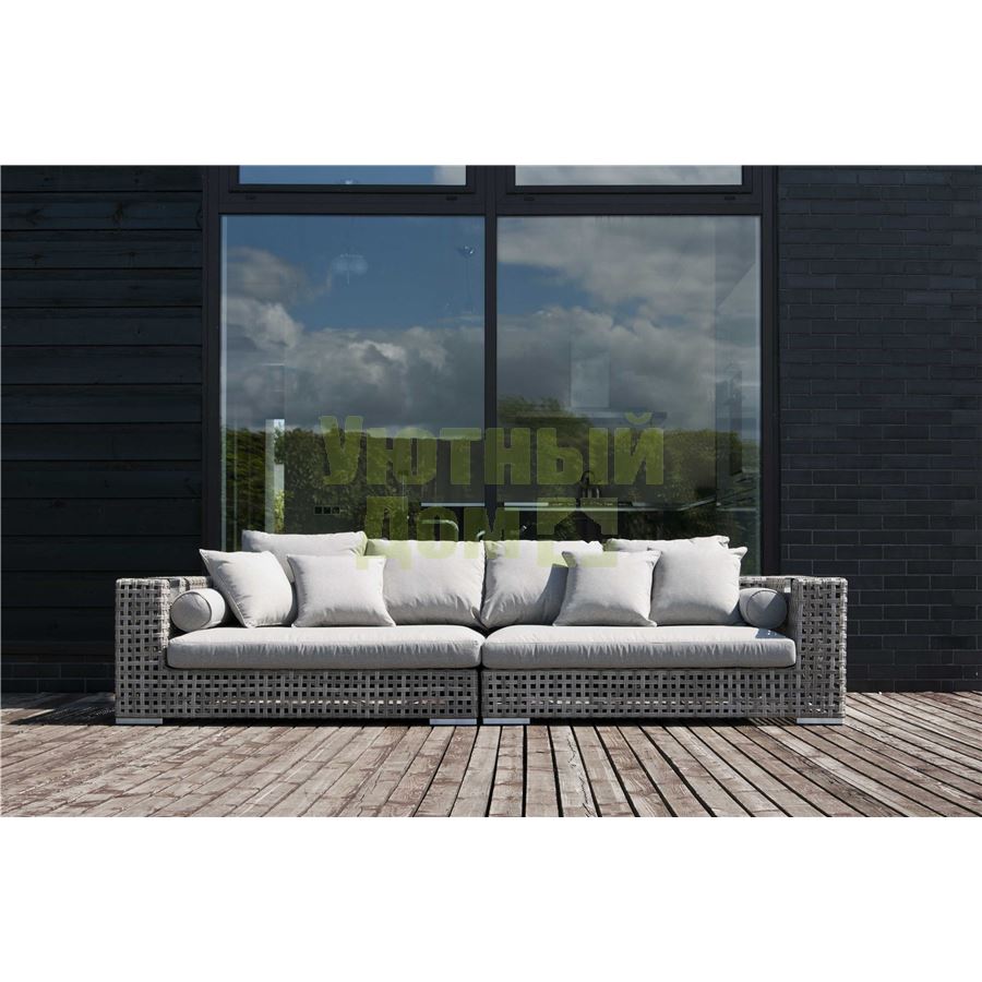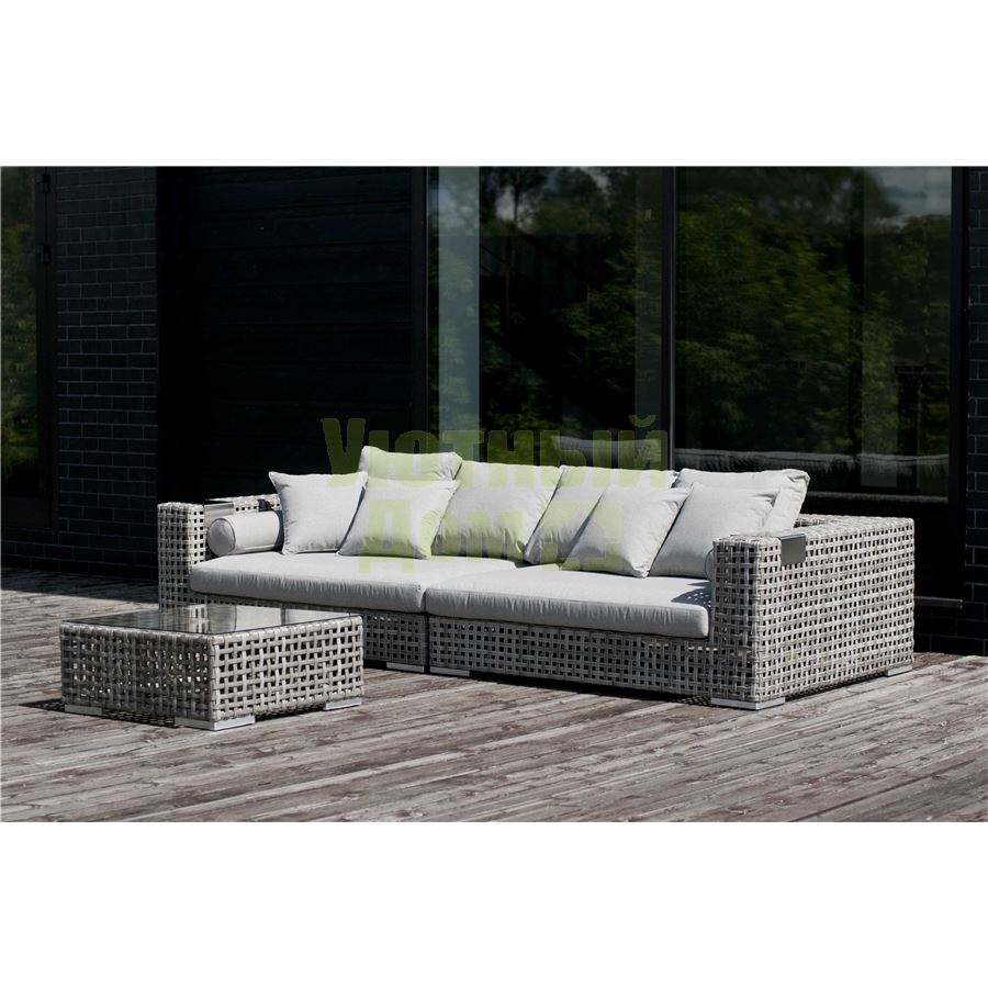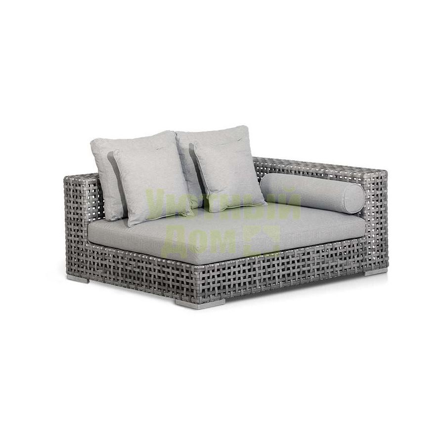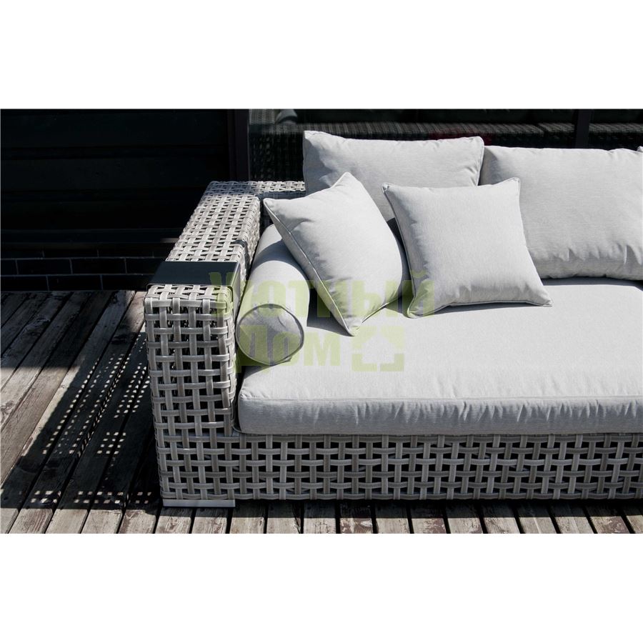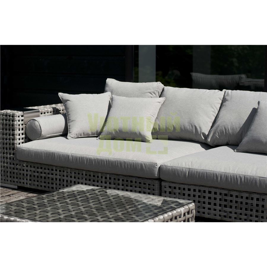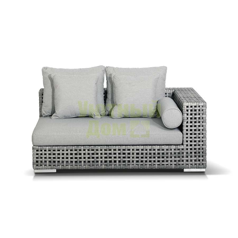 "Канти" , модуль угловой левый в комплекте с подушками, алюминиевый каркас, плоский искусственный ротанг, ручное плетение размеры 1530x1210x610, цвет серый
