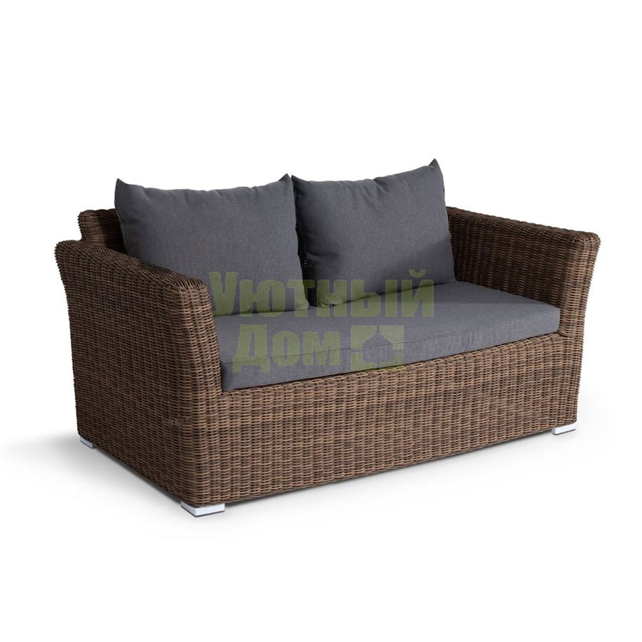 "Капучино", плетеный двухместный диван в комплекте с подушками, алюминиевый каркас, круглый искусственный ротанг, ручное плетение, размер 1700х850х810 мм, цвет коричневый