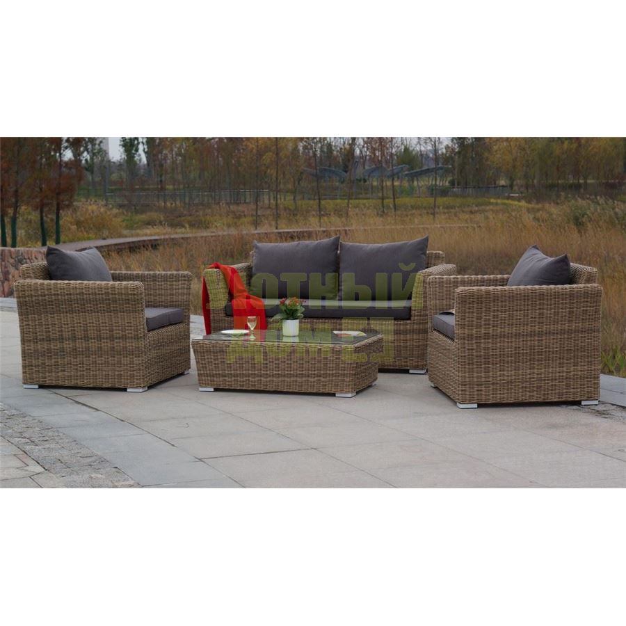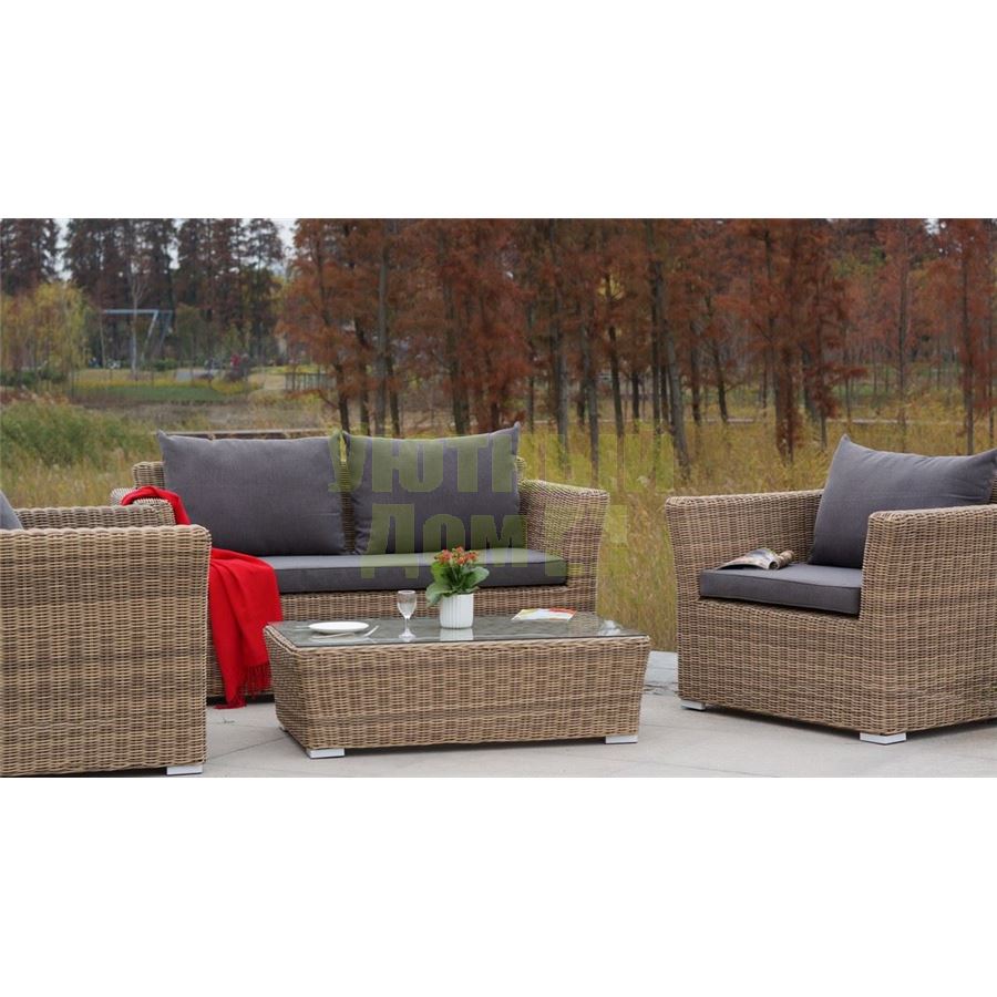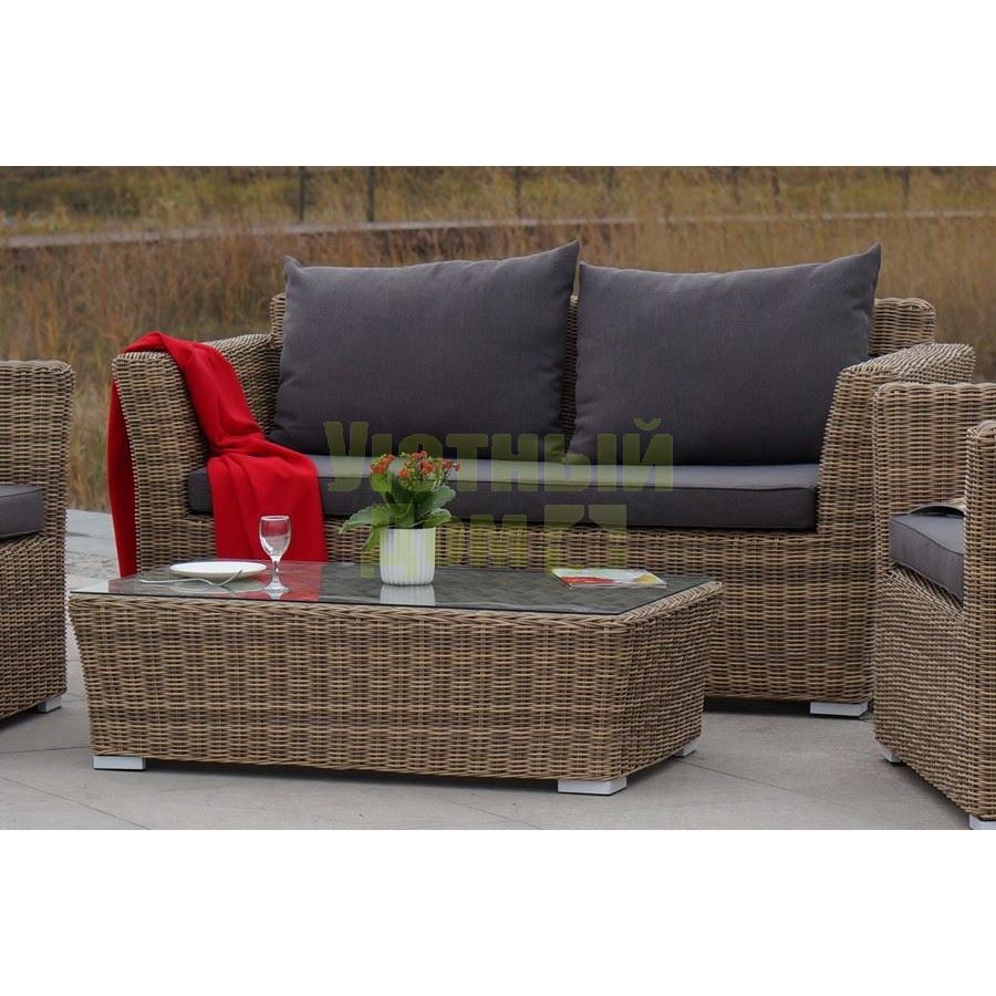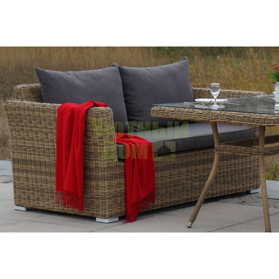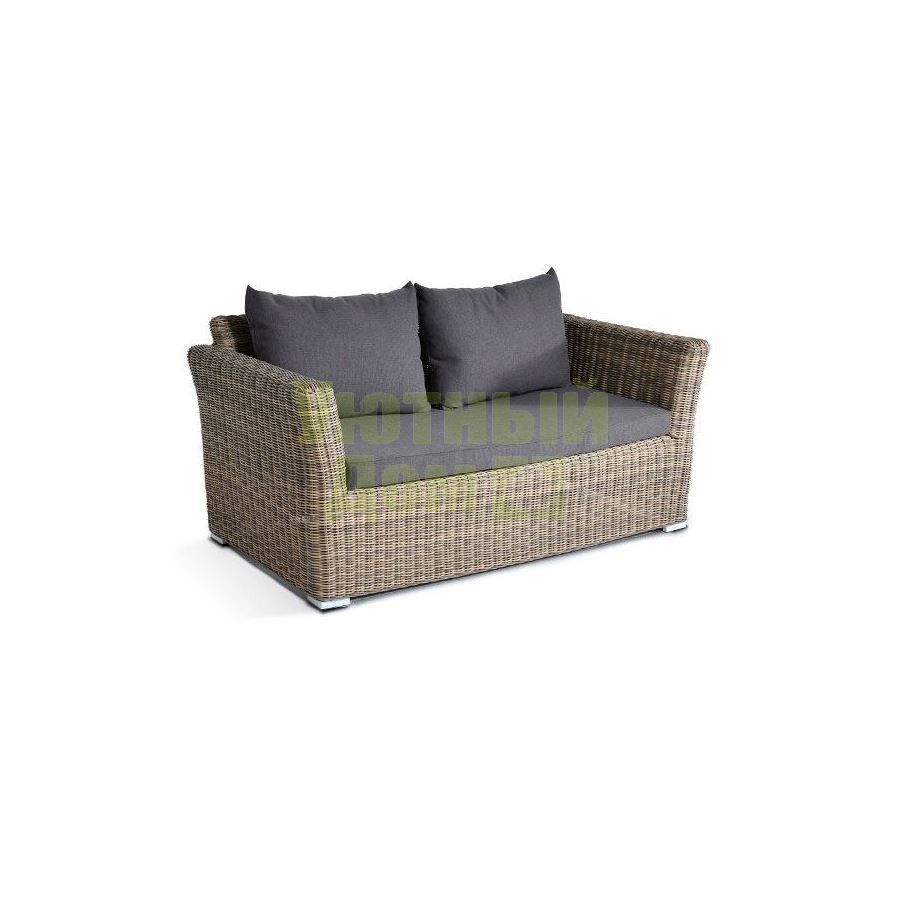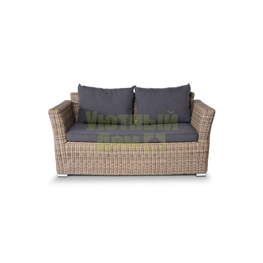 "Капучино", плетеный двухместный диван в комплекте с подушками, алюминиевый каркас, круглый искусственный ротанг, ручное плетение, размер 1700х850х810 мм, цвет соломенный