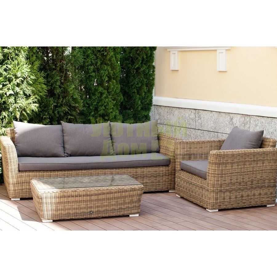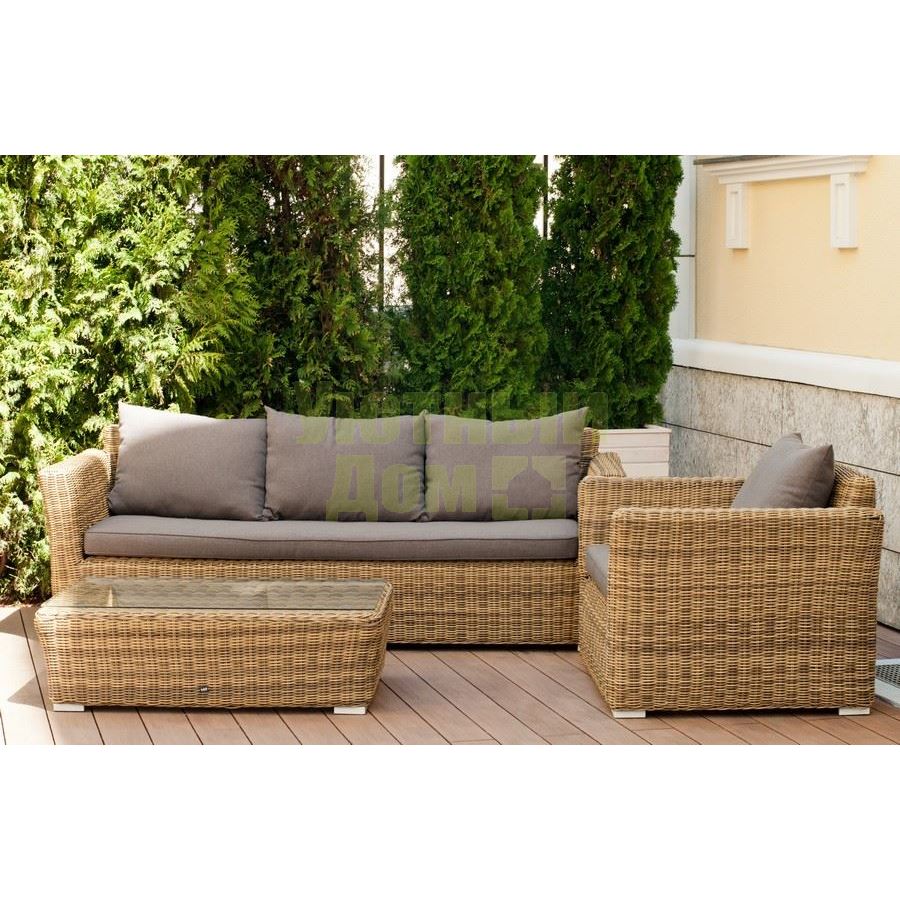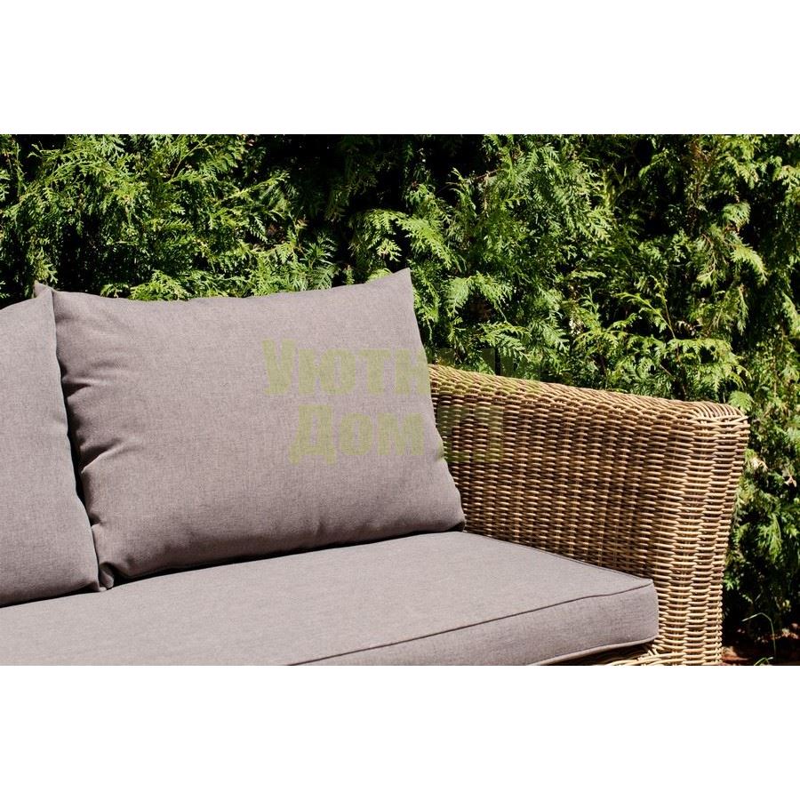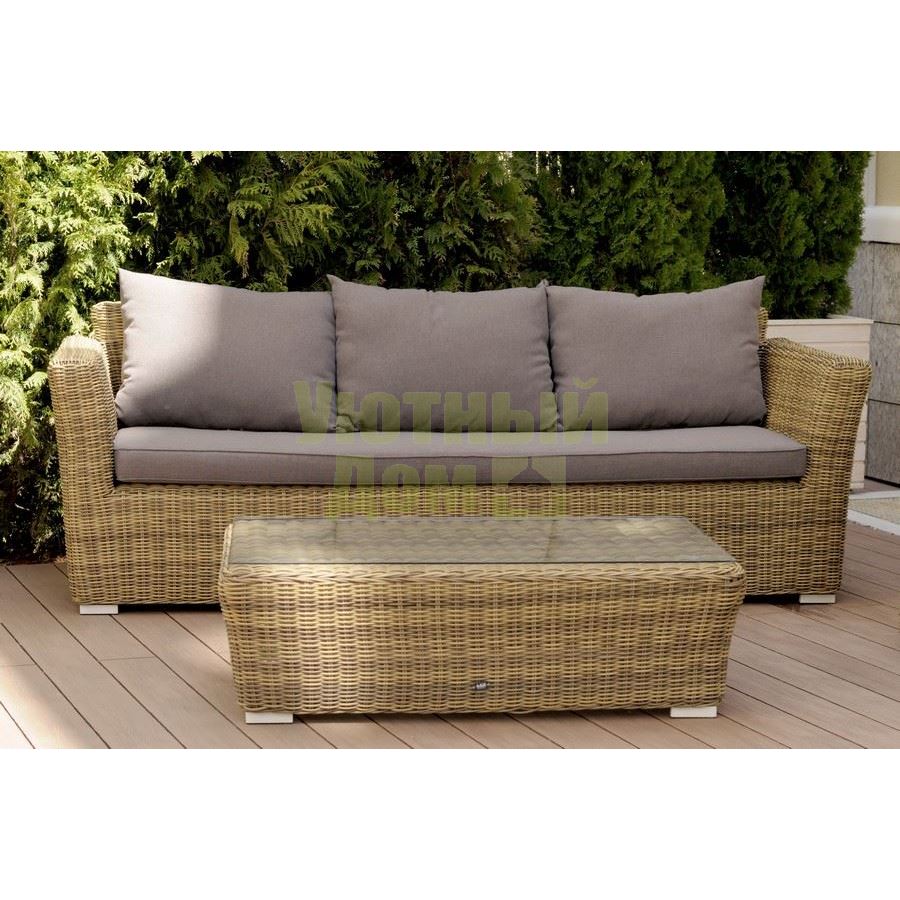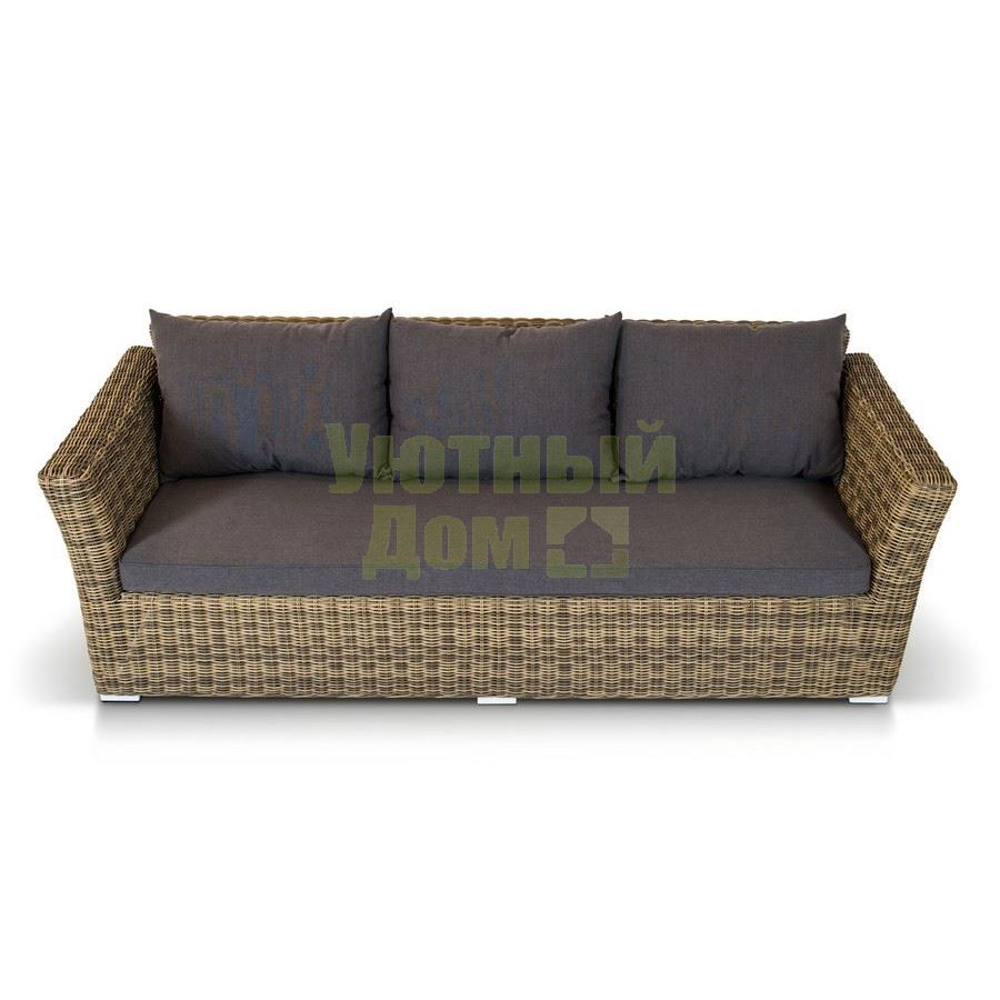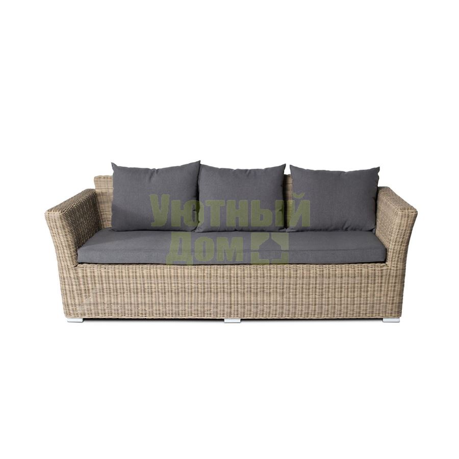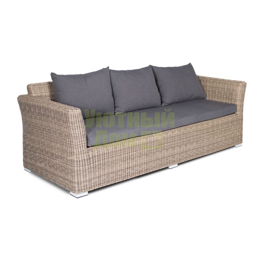 "Капучино", плетеный трехместный диван в комплекте с подушками, алюминиевый каркас, круглый искусственный ротанг, ручное плетение, размер 2200х850х810 мм, цвет соломенный