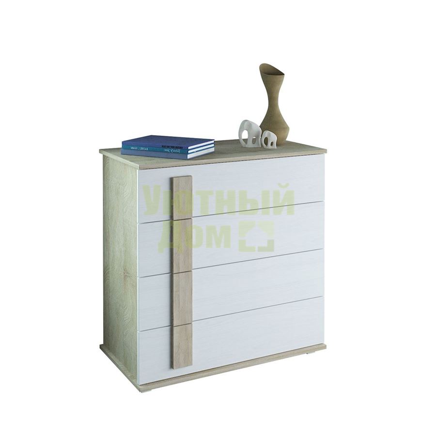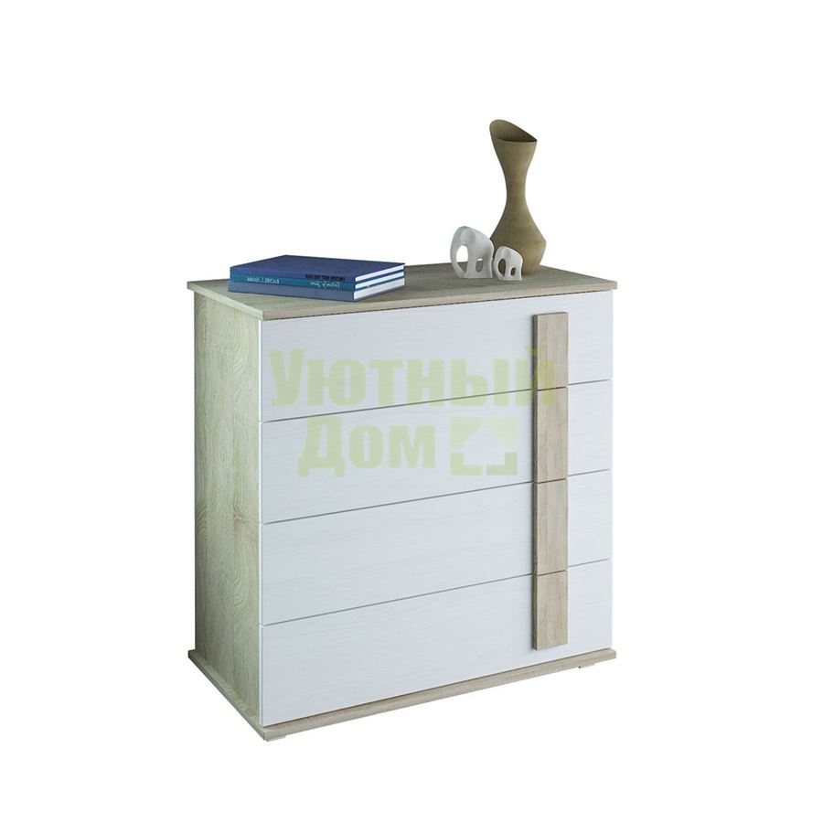 Стиль: Современный; Цвет изделия: дуб сонома / белый; Ширина: 80; Глубина: 44,6; Высота: 86; Материал каркаса: ЛДСП; Материал фасадов: ЛДСП; Количество ящиков: 4; Наличие дверей: Нет; Форма поставки: В разобранном виде; Гарантия производителя : 12 месяцев; Производитель: Россия
