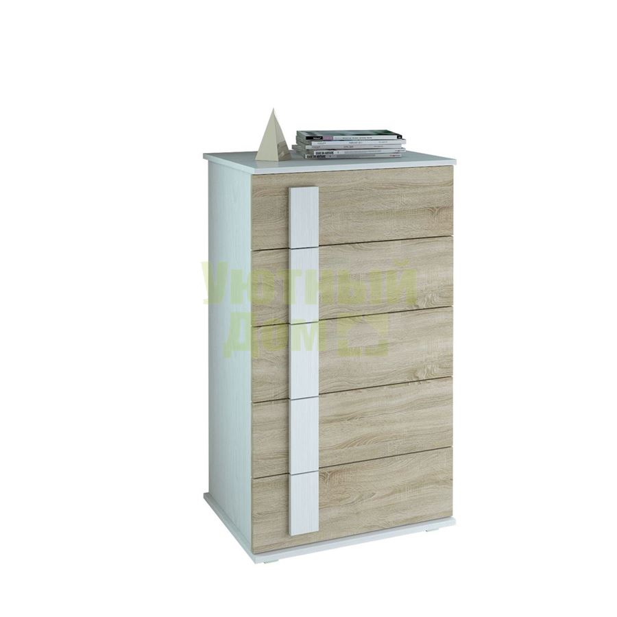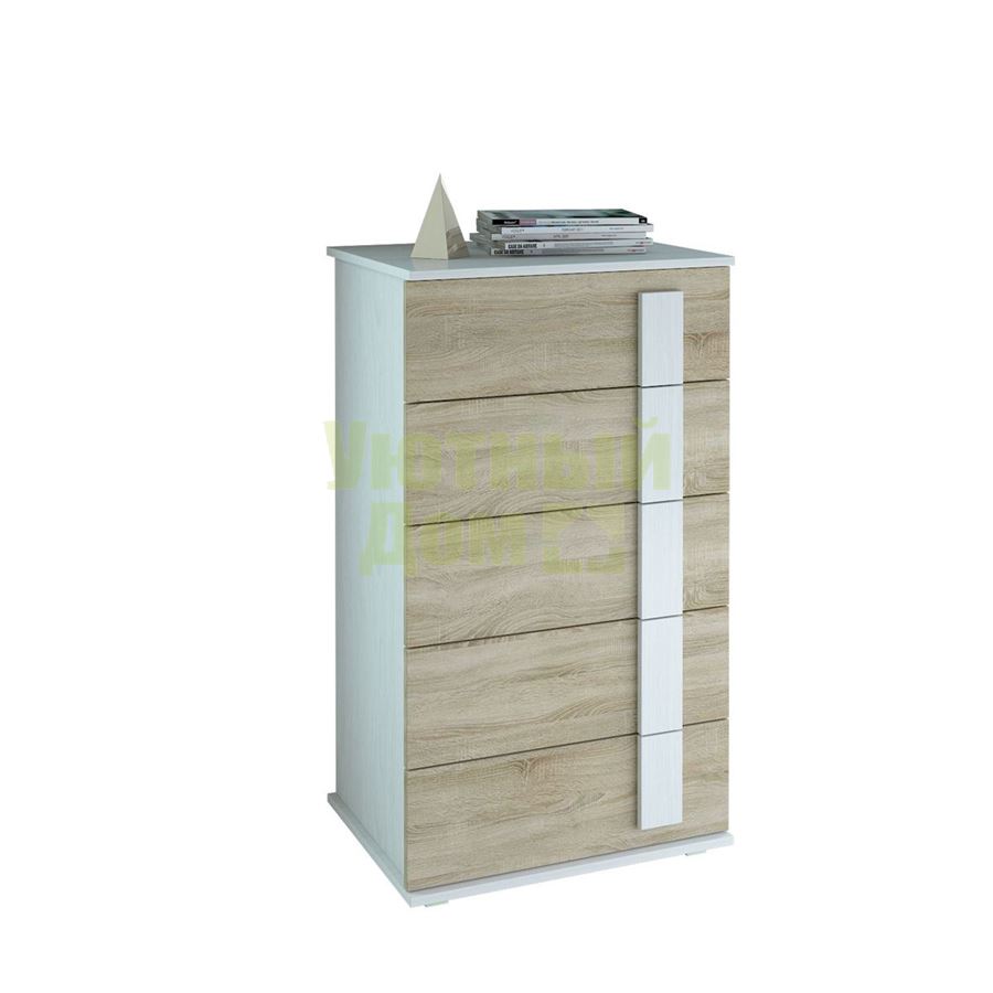 Стиль: Современный; Цвет изделия: белый / дуб сонома; Ширина: 60; Глубина: 44,6; Высота: 105,9; Материал каркаса: ЛДСП; Материал фасадов: ЛДСП; Количество ящиков: 5; Наличие дверей: Нет; Форма поставки: В разобранном виде; Гарантия производителя : 12 месяцев; Производитель: Россия