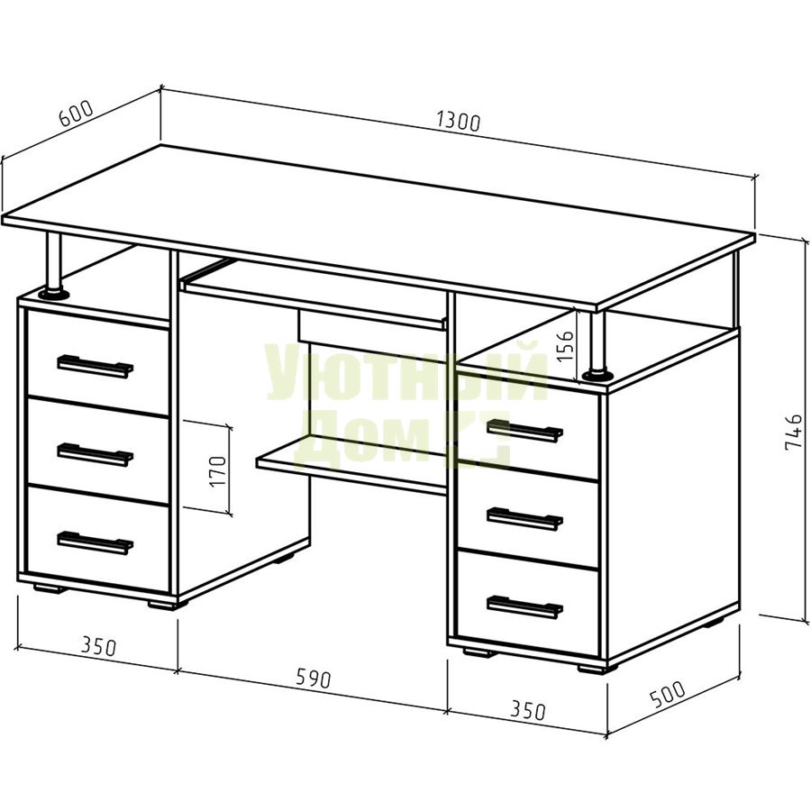 Цвет изделия: Белый; Ширина: 130; Глубина: 60; Высота: 74,6 ; Материал каркаса: ЛДСП; Материал столешницы: ЛДСП; Вес: 56 кг; Объем: 0.1 м3; Форма поставки: В разобранном виде; Количество упаковок: 3; Гарантия производителя : 12 месяцев; Производитель: Россия