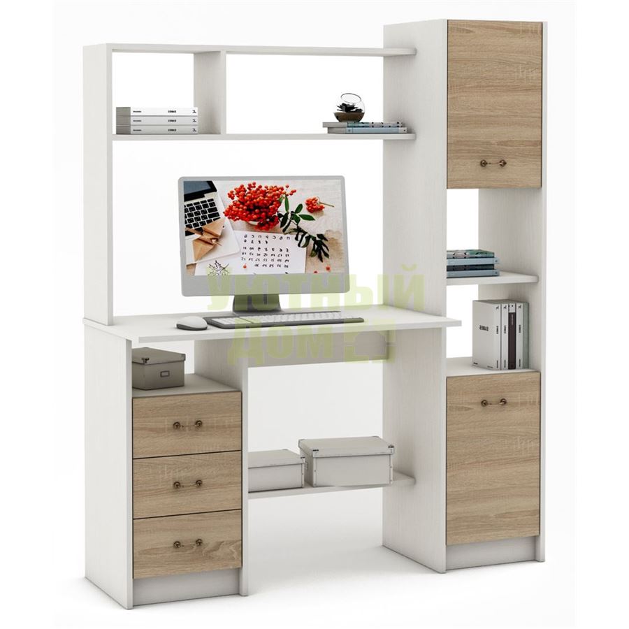 Компьютерный стол Август-4-Белый/Дуб-сонома