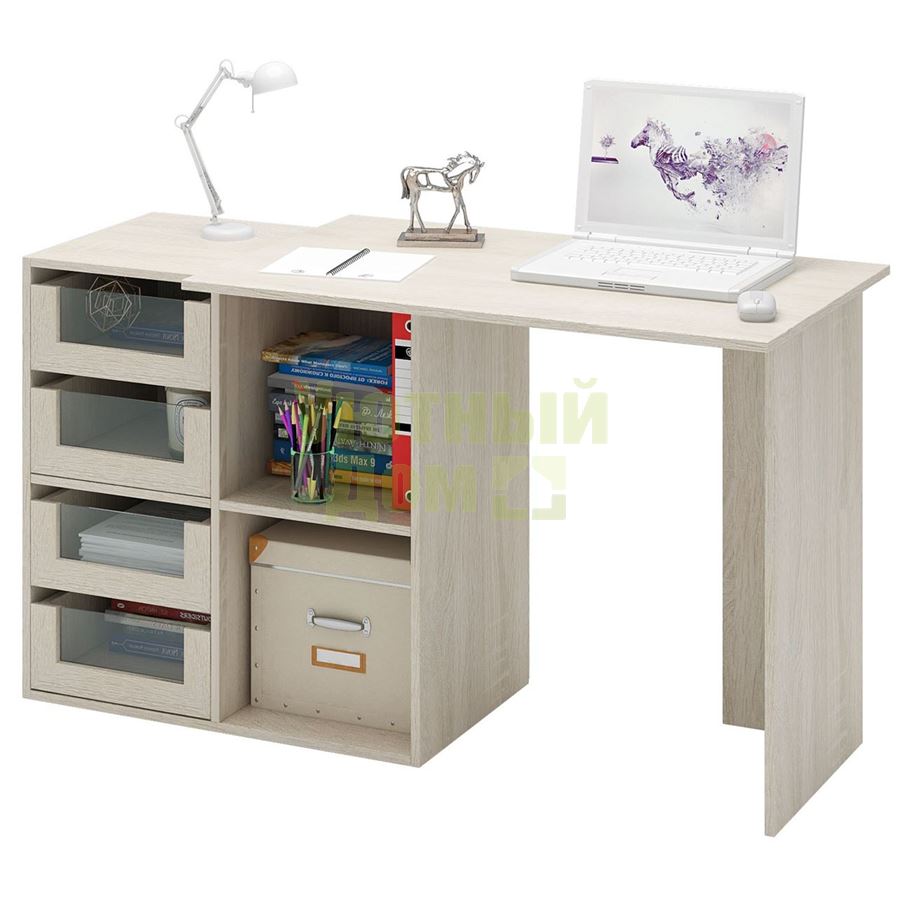 Стол является комплектом модульной системы Прайм. Вы можете собрать индивидуальный комплект из столешниц разных размеров, тумб разных форм и их наполнений (дверок, блока ящиков, ящиков со стеклом или больших ящиков).