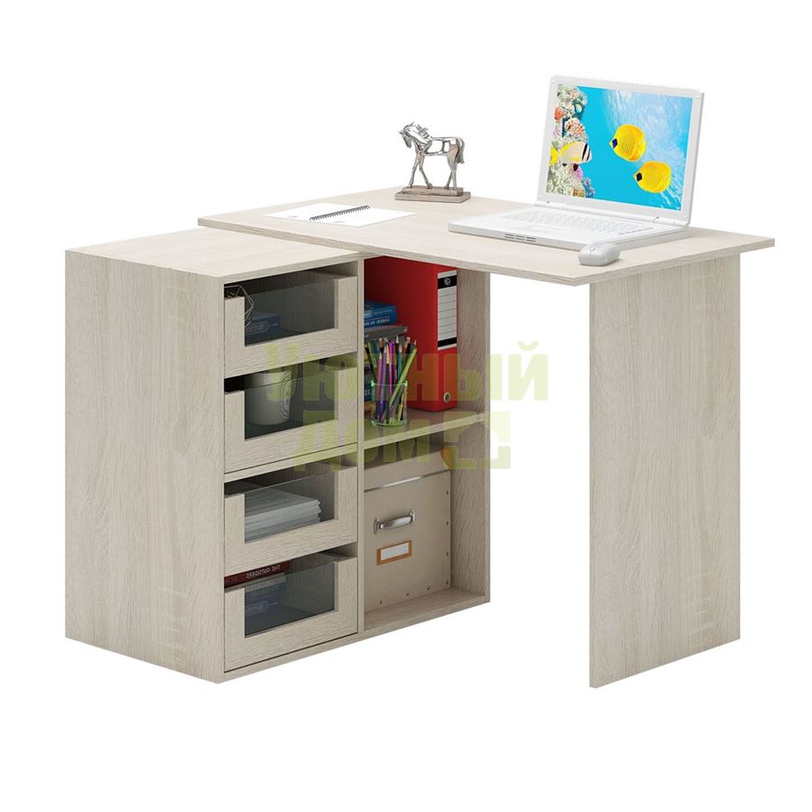 Стол можно собрать как в правом, так и в левом исполнении. Благодаря универсальности конструкции, вы можете установить как прямой, так и угловой вариант стола.