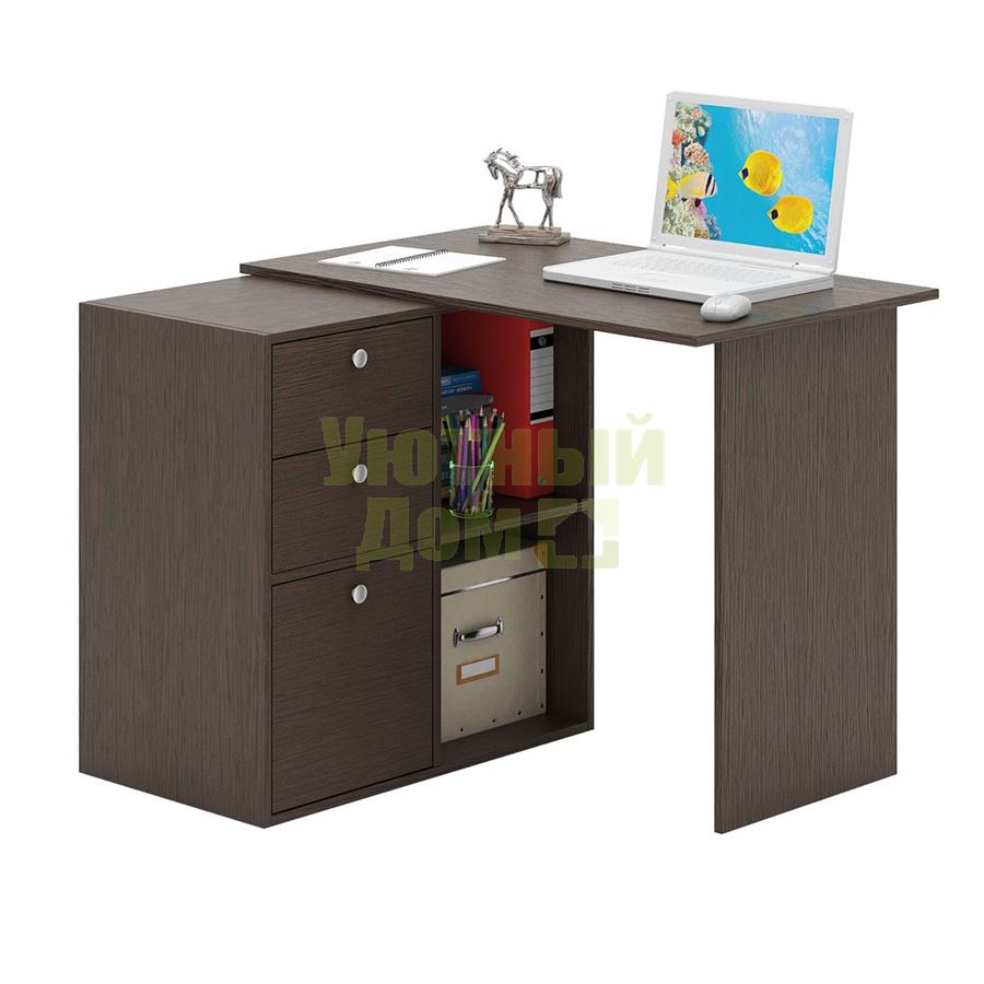 Стол является комплектом модульной системы Прайм. Вы можете собрать индивидуальный комплект из столешниц разных размеров, тумб разных форм и их наполнений (дверок, блока ящиков, ящиков со стеклом или больших ящиков). Тип ручки: кнопка. Декоративные заглушки в тон мебели. Войлочные и пластиковые подпятники. В выдвижных ящиках используются качественные роликовые направляющие. Сборку данного товара желательно осуществлять вдвоем во избежание травмоопасных ситуаций или механических повреждений мебели. Комплект состоит из: столешницы Прайм-10 (1 шт.), тумбы Прайм-22 (1 шт.), блока ящиков Прайм (1 шт.), большого ящика Прайм (1 шт.) Стол можно собрать как в правом, так и в левом исполнении. Благодаря универсальности конструкции, вы можете установить как прямой, так и угловой вариант стола.