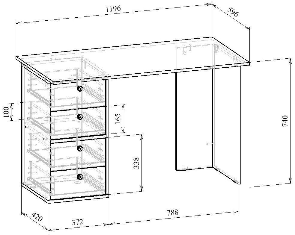 Стол является комплектом модульной системы Прайм. Вы можете собрать индивидуальный комплект из столешниц разных размеров, тумб разных форм и их наполнений (дверок, блока ящиков, ящиков со стеклом или больших ящиков).