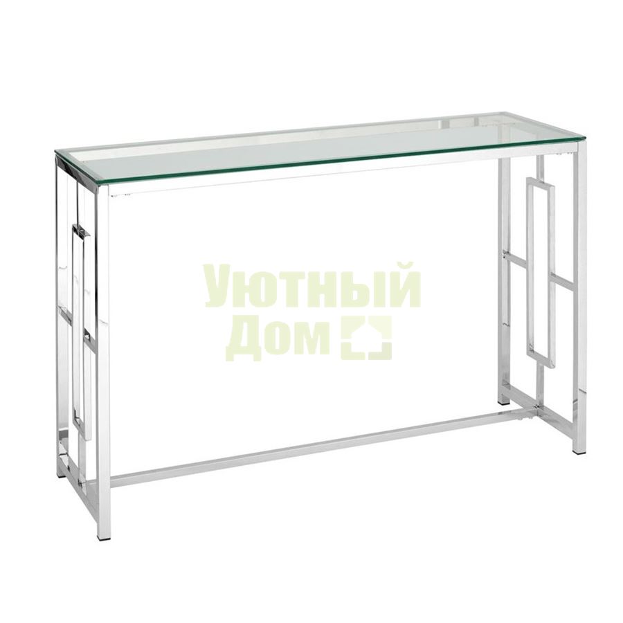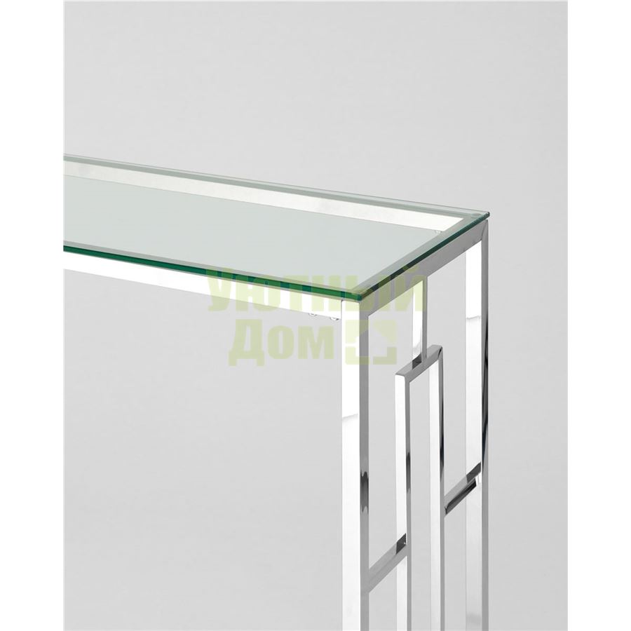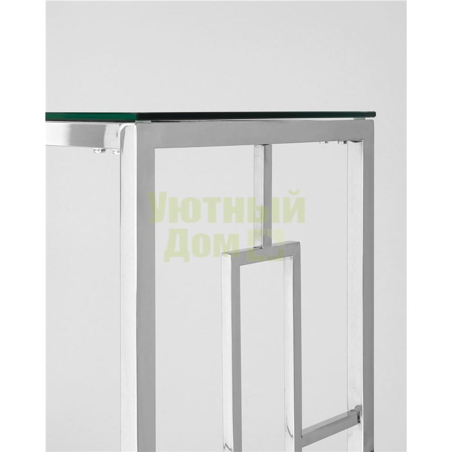 Консоль БРУКЛИН, благодаря оригинальной форме, станет ярким дизайнерским акцентом в интерьере. Каркас консоли изготовлен из нержавеющей стали, столешница - закаленное стекло.