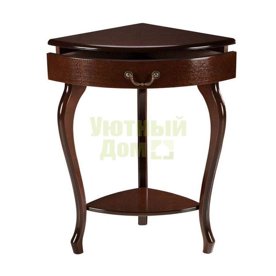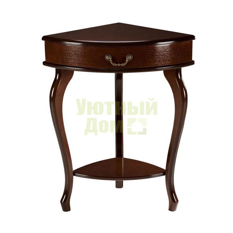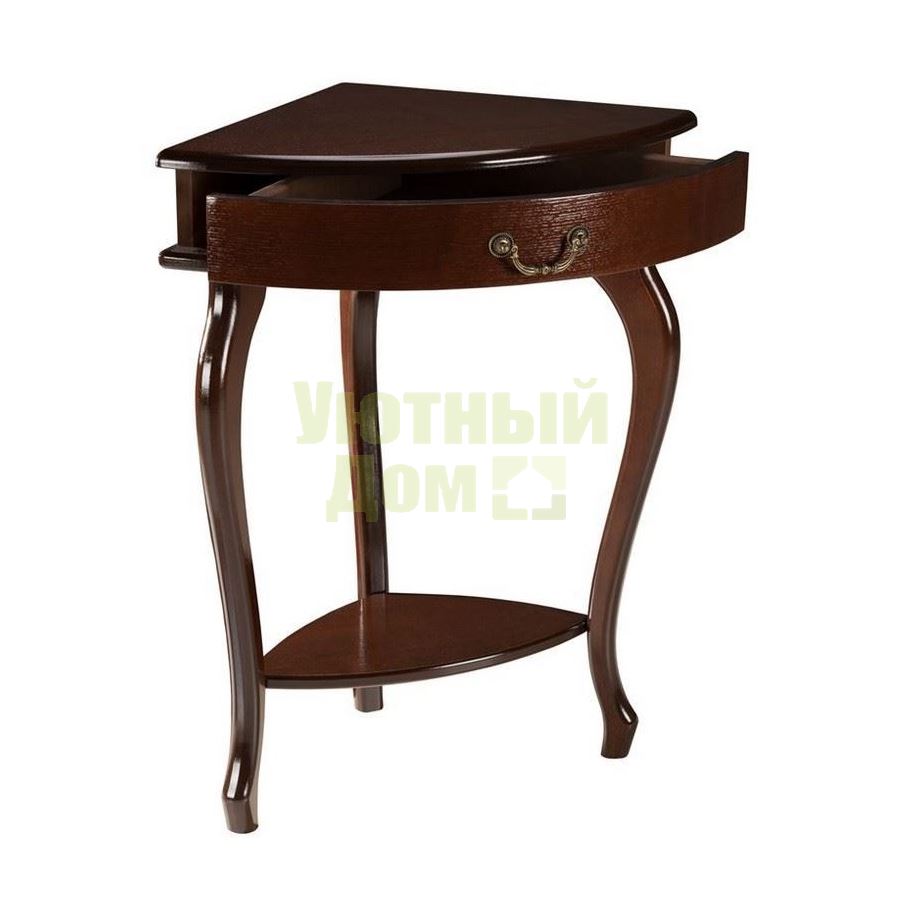 Стиль: Классический; Цвет: Орех; Ширина, см: 58; Глубина, см: 41; Высота, см: 73; Количество ножек: 3; Материал каркаса: МДФ; Материал столешницы: МДФ, Шпон; Наличие ящика: С ящиком; Производитель: Россия; Форма поставки: В разобранном виде
