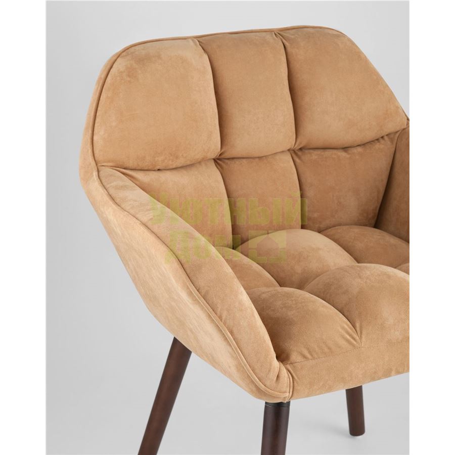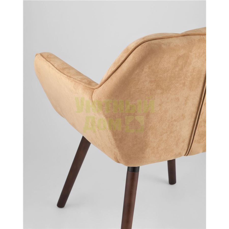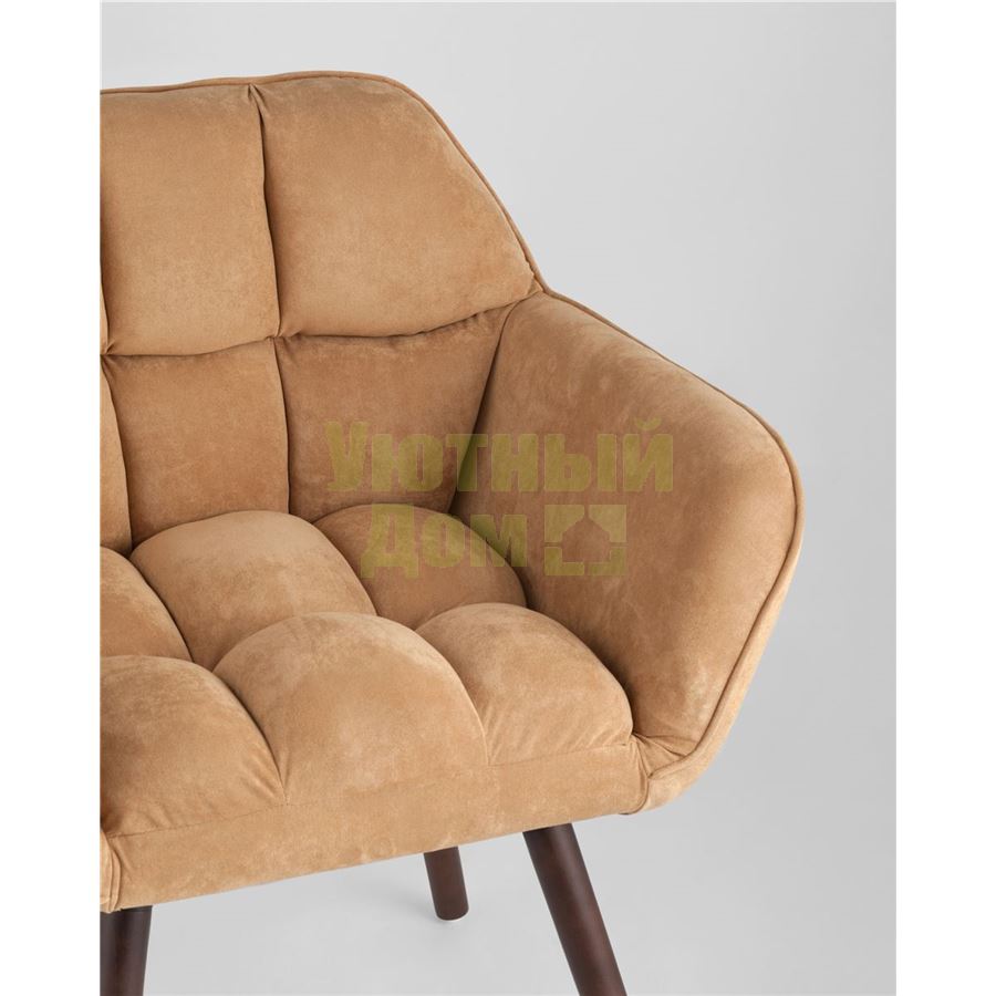 Оригинальное мягкое дизайнерское кресло с удобными подлокотниками. Ножки выполнены из массива бука. В качестве обивки используется износостойкая прочная замша, которая не истирается и не линяет со временем. Кресло отличает толстая спинка и сиденье, украшенные красивой строчкой, которая добавляет креслу интересной фактуры. Каркас металлический, выдерживает нагрузку до 150 кг.