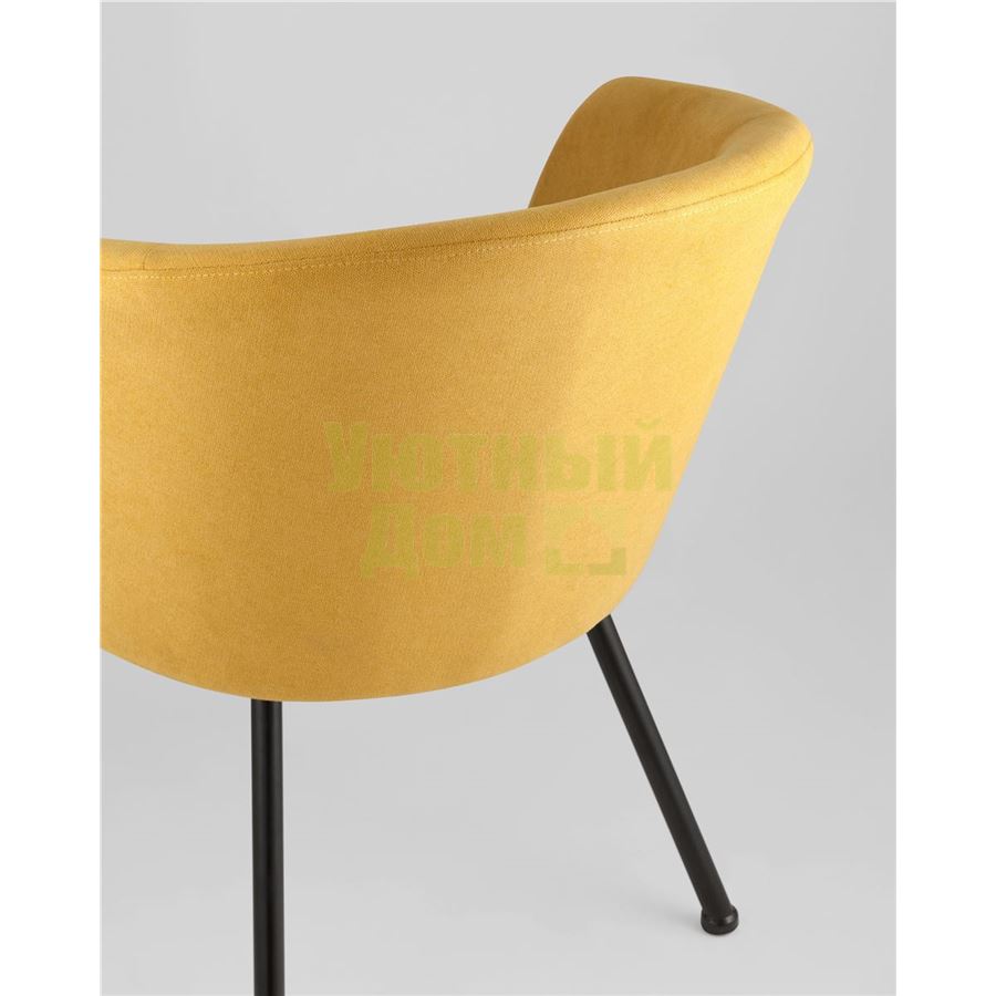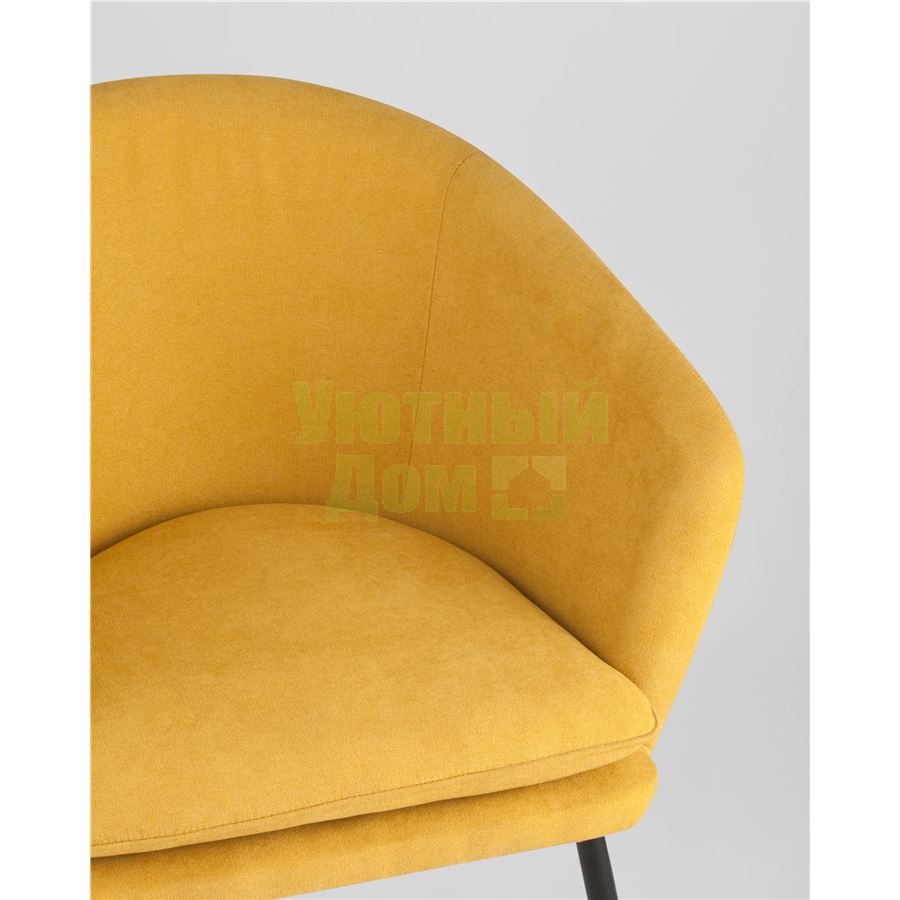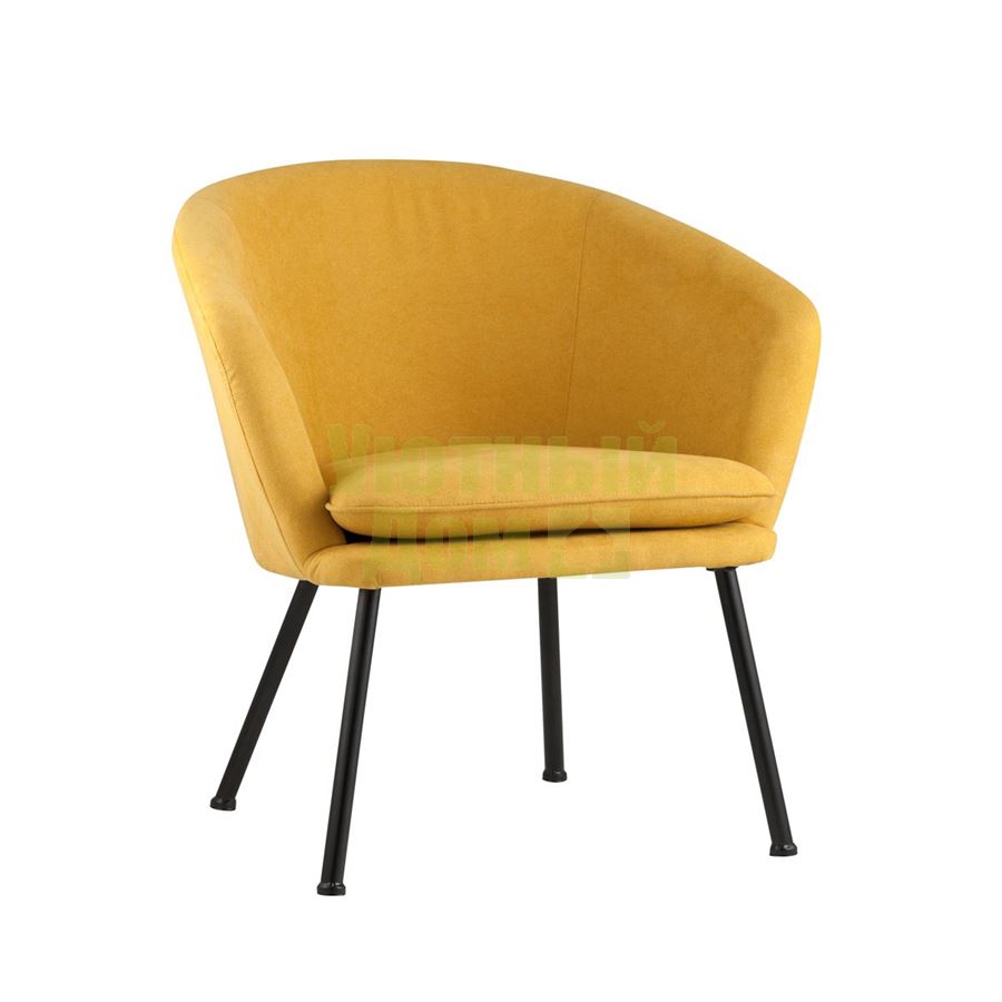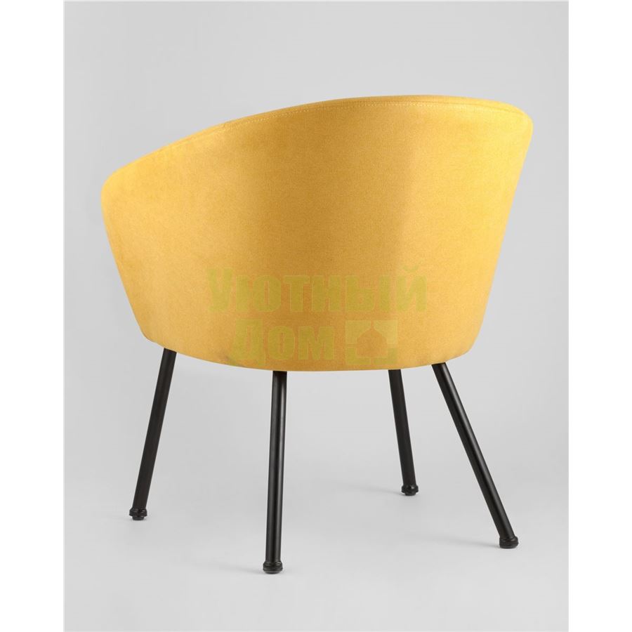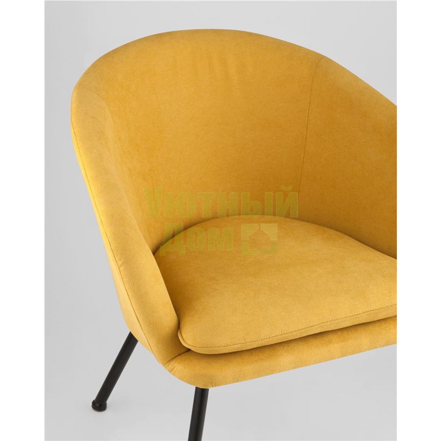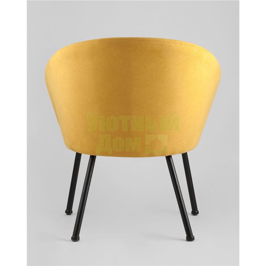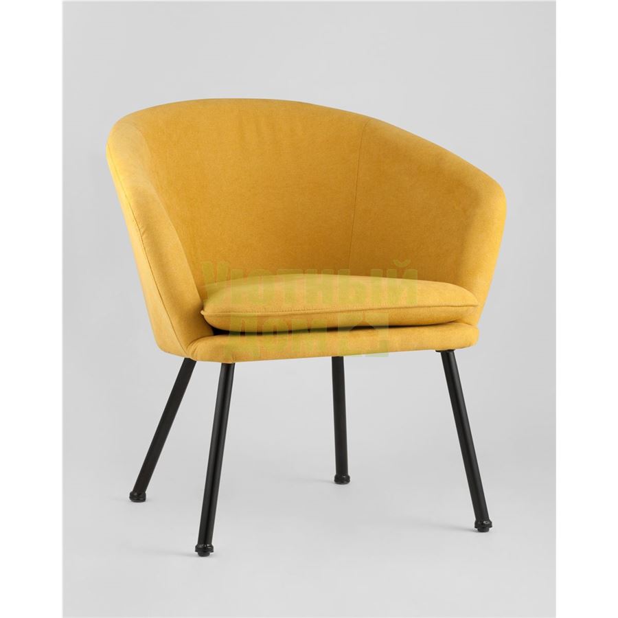Широкая спинка плавно переходит в удобные подлокотники. Для дополнительного комфорта в кресле есть мягкое плотное сиденье. В качестве обивки используется ткань шенилл, плотный износостойкий материал с бархатистой структурой, приятный на ощупь. Металлический каркас добавляет устойчивости и выдерживает нагрузку до 120 кг. Ножки металлические черные.
