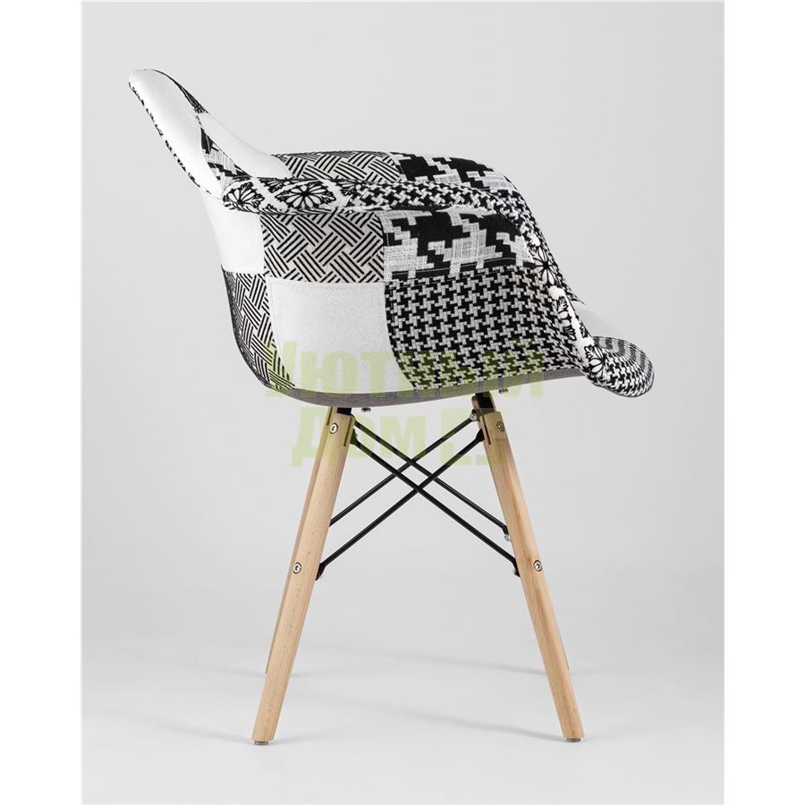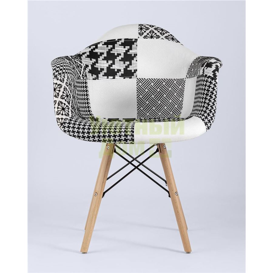Кресло Eames в стиле пэчворк черно-белое, ножки массив бука доставляется в пределах МКАД бесплатно, при отправке в регионы России - бесплатно сдадим в ТК ПЭК.