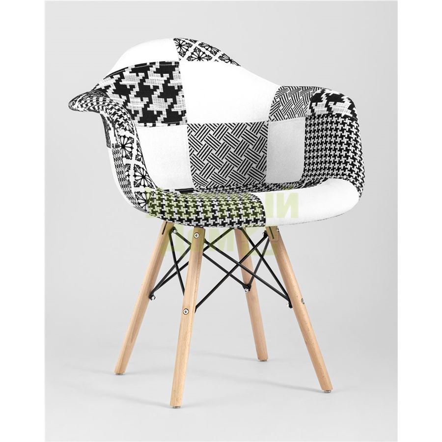 Описание: Кресло Eames в стиле пэчворк черно-белое, ножки массив бука