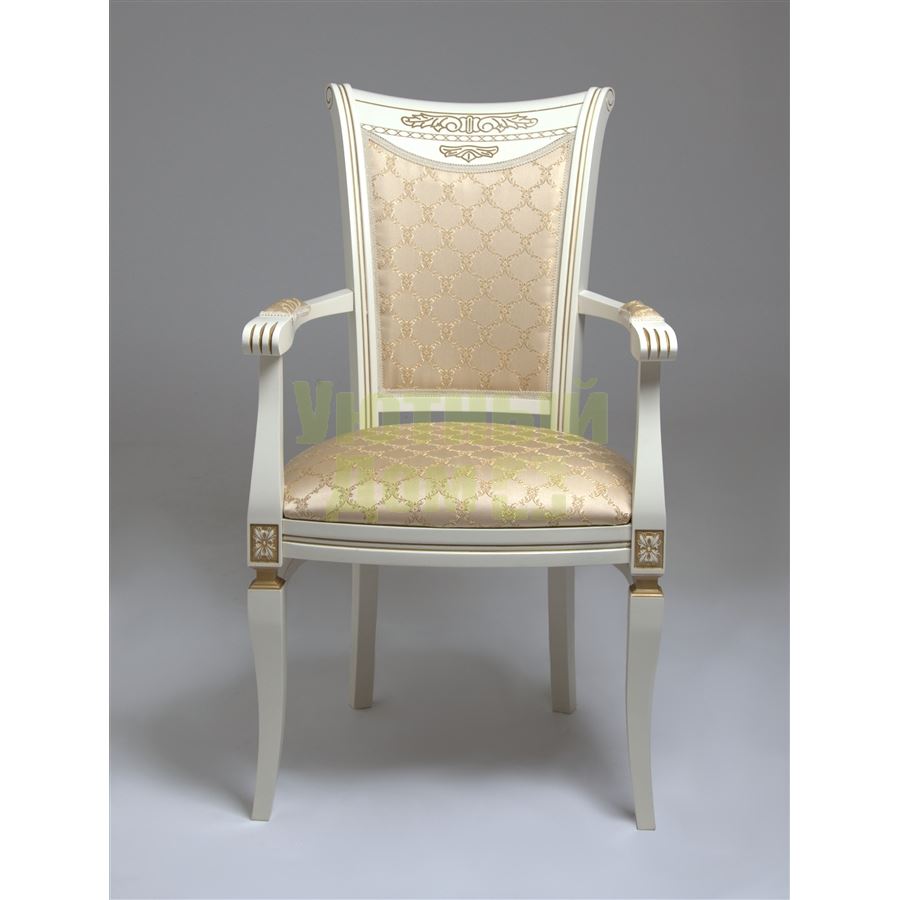 Стиль: Классический; Цвет каркаса: Слоновая кость; Обивка: Ткань; Материал каркаса: Массив бука; Тип сиденья: Мягкое; Подлокотники: С подлокотниками; Ширина: 56; Глубина: 61; Высота: 95; Высота сидения, см: 48; Форма поставки: В собранном виде; Производство: Россия