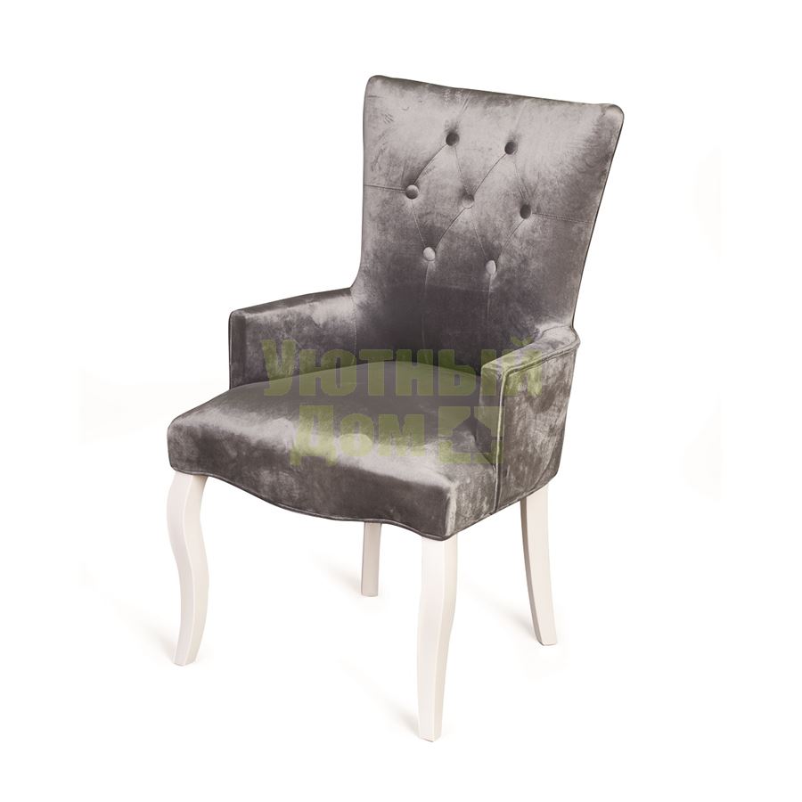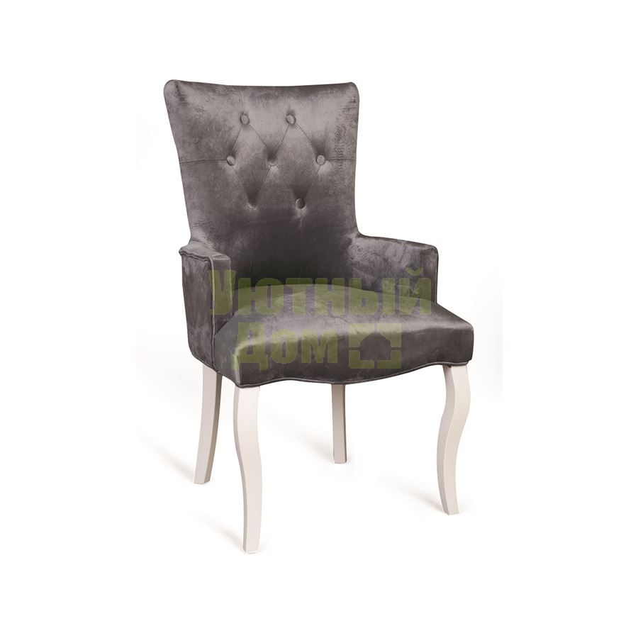 Стиль: Классический; Цвет каркаса: Белый; Обивка: Ткань; Материал каркаса: Массив березы; Тип сиденья: Мягкое; Подлокотники: С подлокотниками; Ширина: 52; Глубина: 56; Высота: 96; Форма поставки: В разобранном виде; Производство: Россия