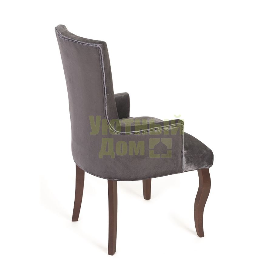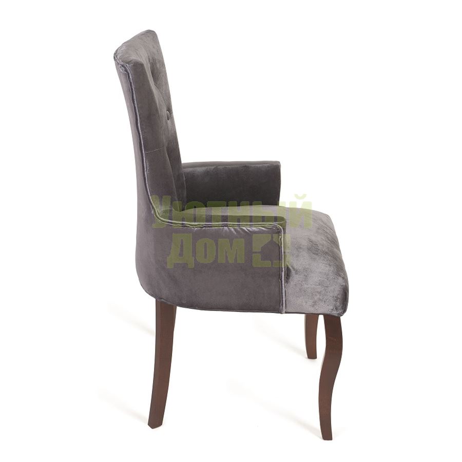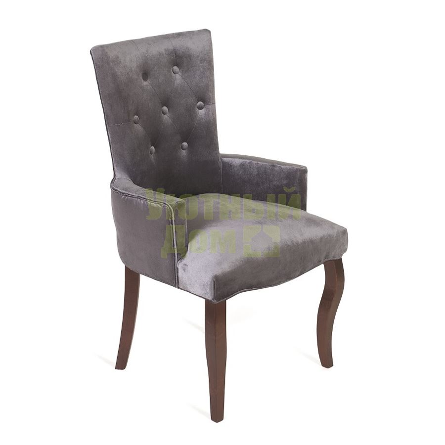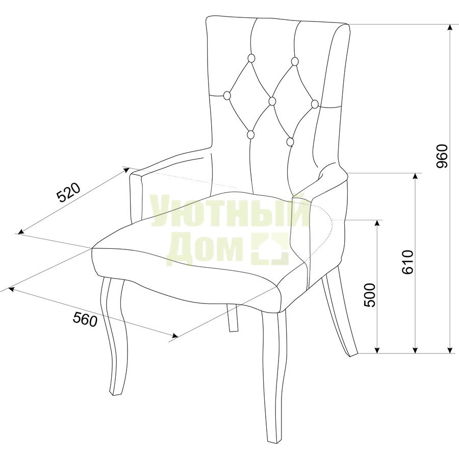Стиль: Классический; Цвет каркаса: Темный орех, Коричневый; Обивка: Ткань; Материал каркаса: Массив березы; Тип сиденья: Мягкое; Подлокотники: С подлокотниками; Ширина: 52; Глубина: 56; Высота: 96; Форма поставки: В разобранном виде; Производство: Россия