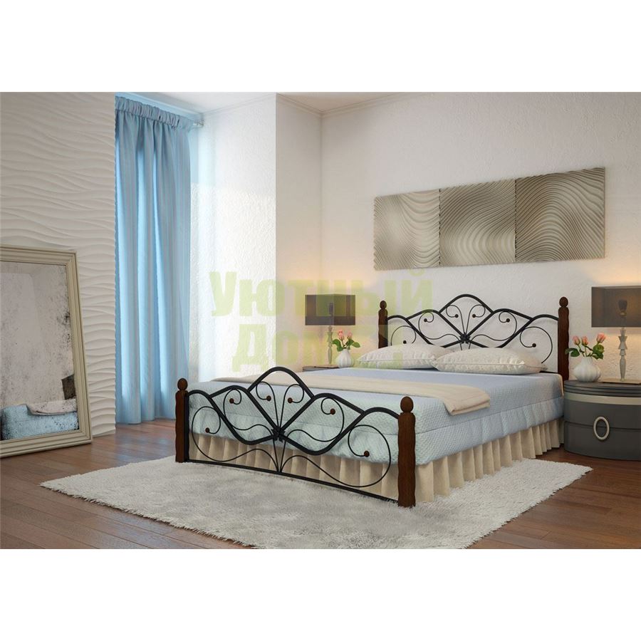 Кровать Венера с элементами ковки. Ножки кровати изготовлены из массива березы, основание - металлическое с березовыми ламелями, спинка и изножье декорированы фигурными металлическими элементами. Кровать поставляется в разобранном виде в 4 коробках. Металлические кровати отличаются надежностью и привлекательной ценой. Кровать Венера превосходно смотрится не только в интерьере городской квартиры, но также в спальне загородного дома или дачи.