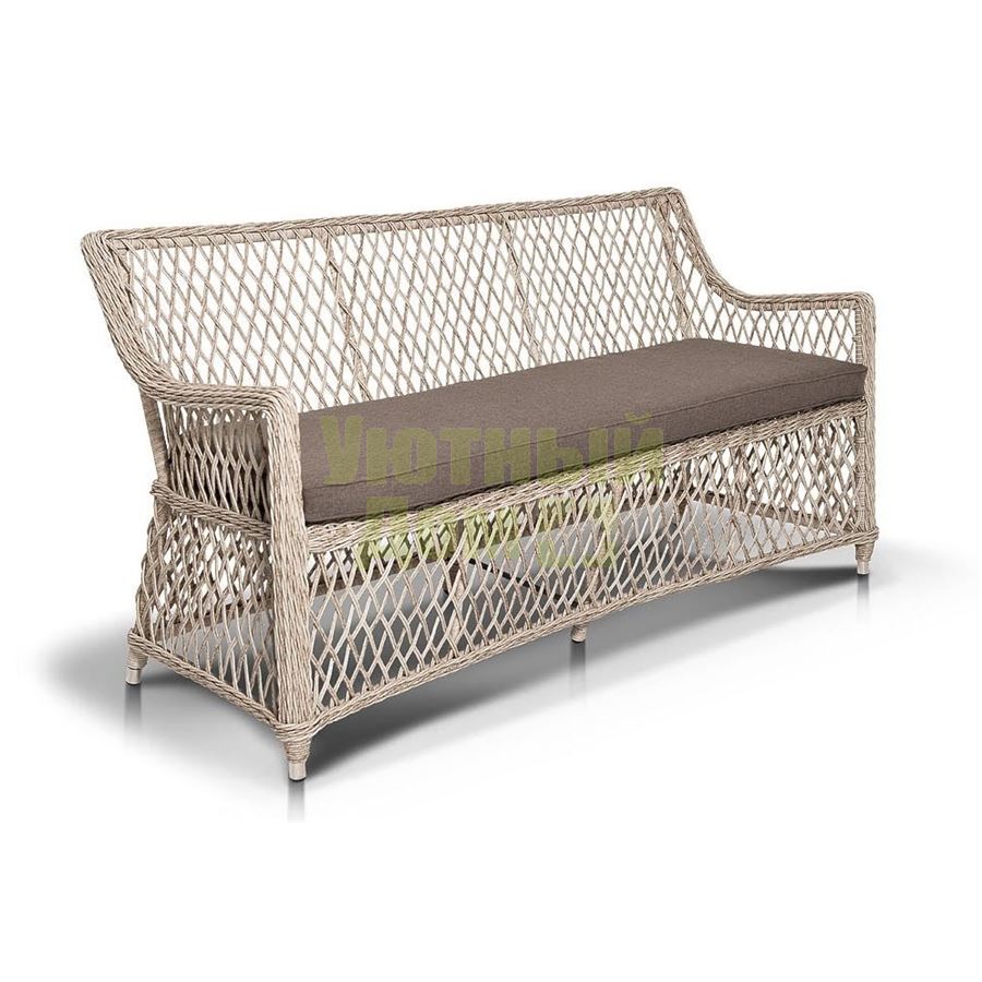"Латте" диван двухместный в комплекте с подушкой, алюминиевый каркас, круглый искусственный ротанг, ручное плетение, размер 1600х680х840, цвет белый