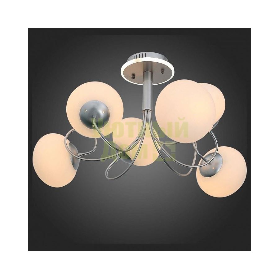 Возможность подключения диммера: можно, если установить лампу накаливания; Степень пылевлагозащиты, IP: 20; Стиль: модерн; Тип лампы: накаливания ИЛИ светодиодная [LED]; Тип лампы основной: накаливания; Форма плафонов: сфера; Цвет плафонов и подвесок: белый; Гарантия, месяцы: 24; Диапазон рабочих температур: +1-[+35]; Количество плафонов: 6; Лампы в комплекте: отсутствуют; Максимальная мощность лампы, Вт: 40; Материал арматуры: металл; Материал п...