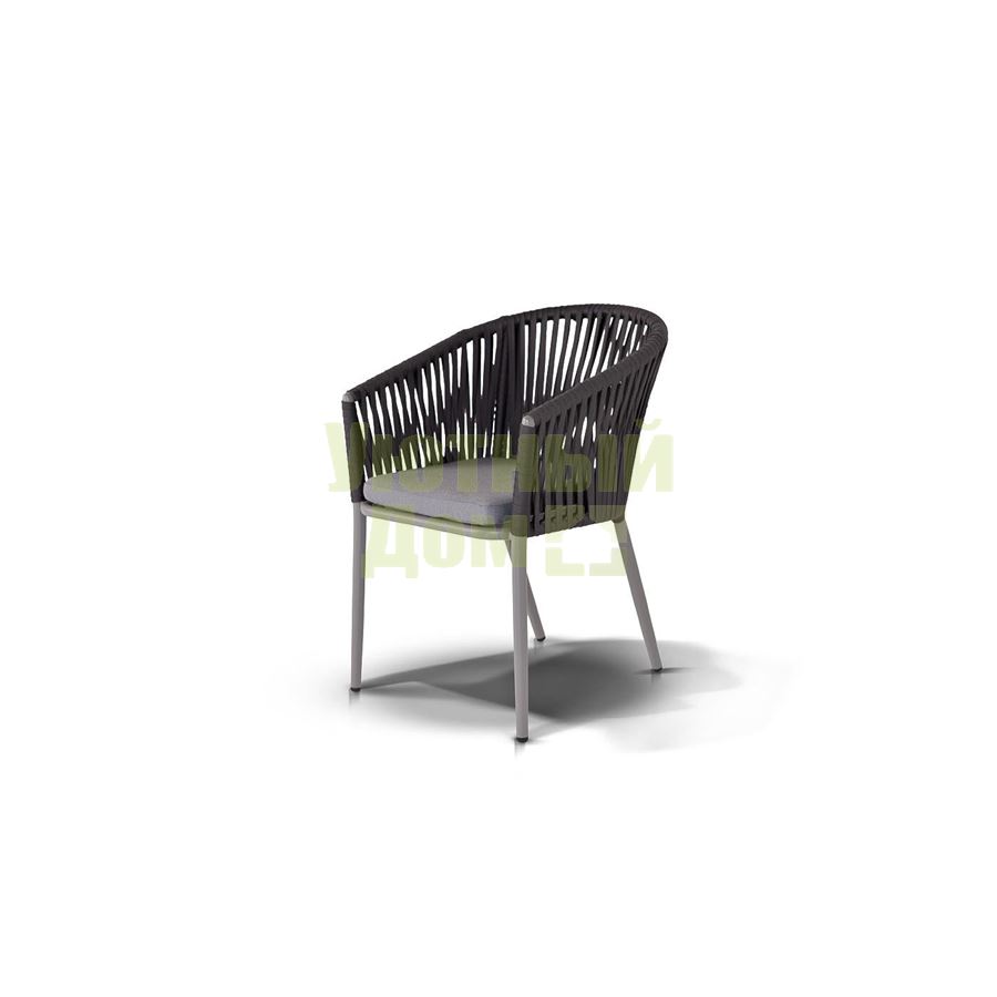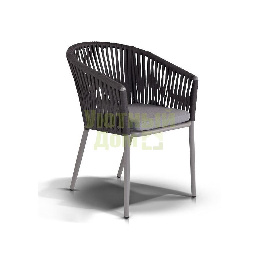 Стул "Марсель", алюминиевый каркас, оплетен вручную эластичными синтетическими лентами из высокопрочных полиэфирных волокон, в комплекте с подушкой, размеры 570X620X800, цвет темно-серый