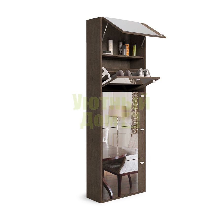 Купить Обувной шкаф 5С /Зеркало/60*23*178/Венге темный/Венге темный/