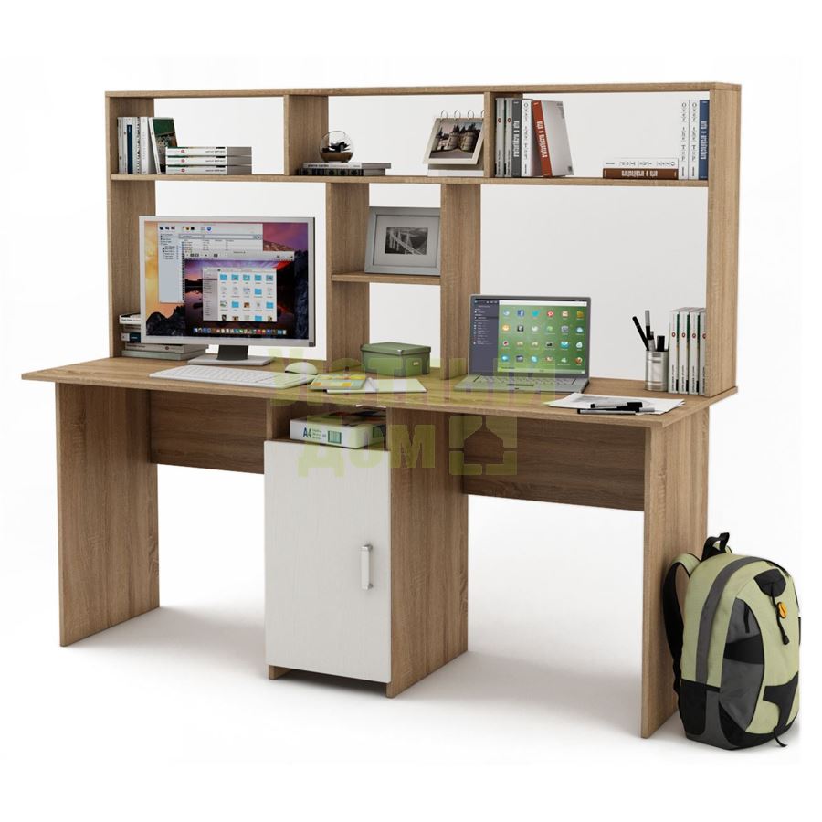 Купить Письменный стол Лайт-10 с надстройкой-Дуб-сонома/Белый