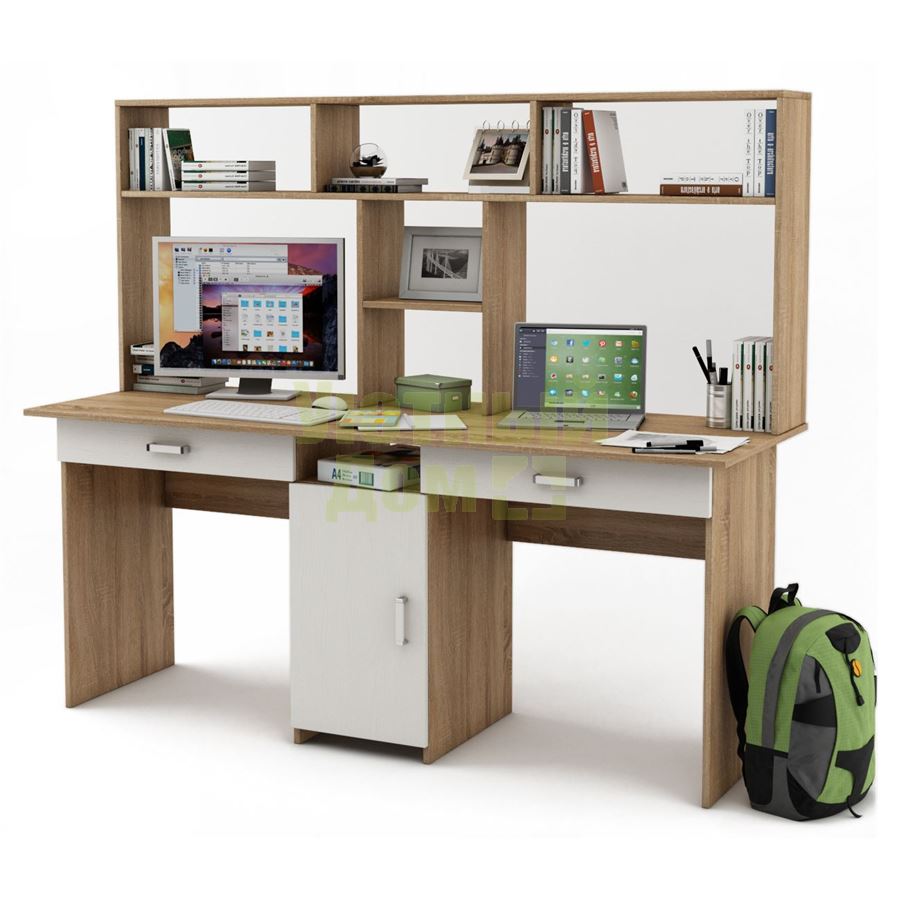 Купить Письменный стол Лайт-10Я с надстройкой-Дуб-сонома/Белый