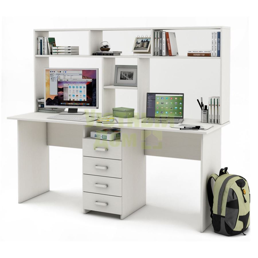 Купить Письменный стол Лайт-11 с надстройкой-Белый