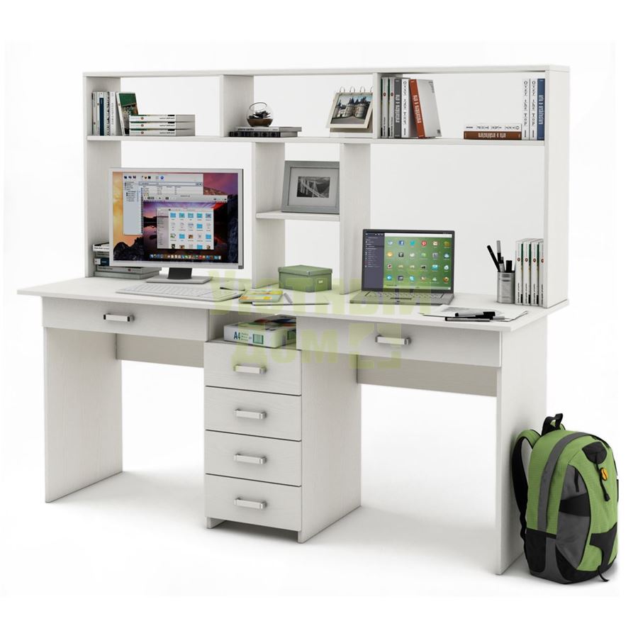 Купить Письменный стол Лайт-11Я с надстройкой-Белый