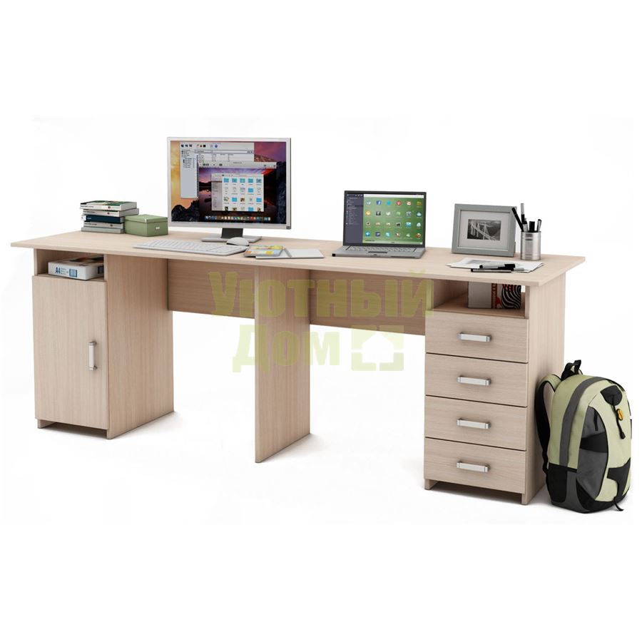 Цвет изделия: дуб молочный; Ширина: 208,4 ; Глубина: 60; Высота: 74,6 ; Материал каркаса: ЛДСП; Материал столешницы: ЛДСП; Вес: 55 кг; Объем: 0.12 м3; Форма поставки: В разобранном виде; Количество упаковок: 3; Гарантия производителя : 12 месяцев; Производитель: Россия