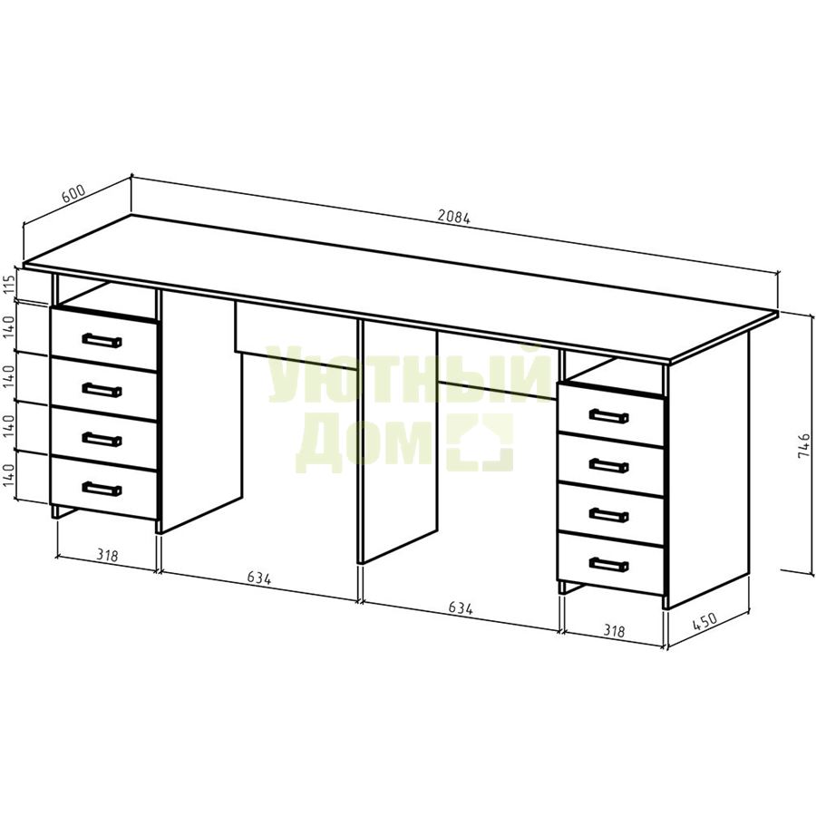 Цвет изделия: Дуб сонома/Дуб сонома; Ширина: 208,4 ; Глубина: 60; Высота: 74,6 ; Материал каркаса: ЛДСП; Материал столешницы: ЛДСП; Вес: 60 кг; Объем: 0.13 м3; Форма поставки: В разобранном виде; Количество упаковок: 4; Гарантия производителя : 12 месяцев; Производитель: Россия