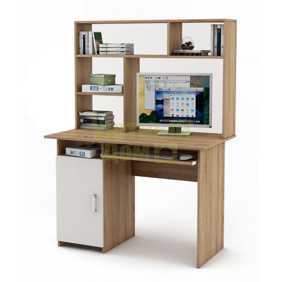 Купить Письменный стол Лайт-2К с надстройкой-Дуб-сонома/Белый
