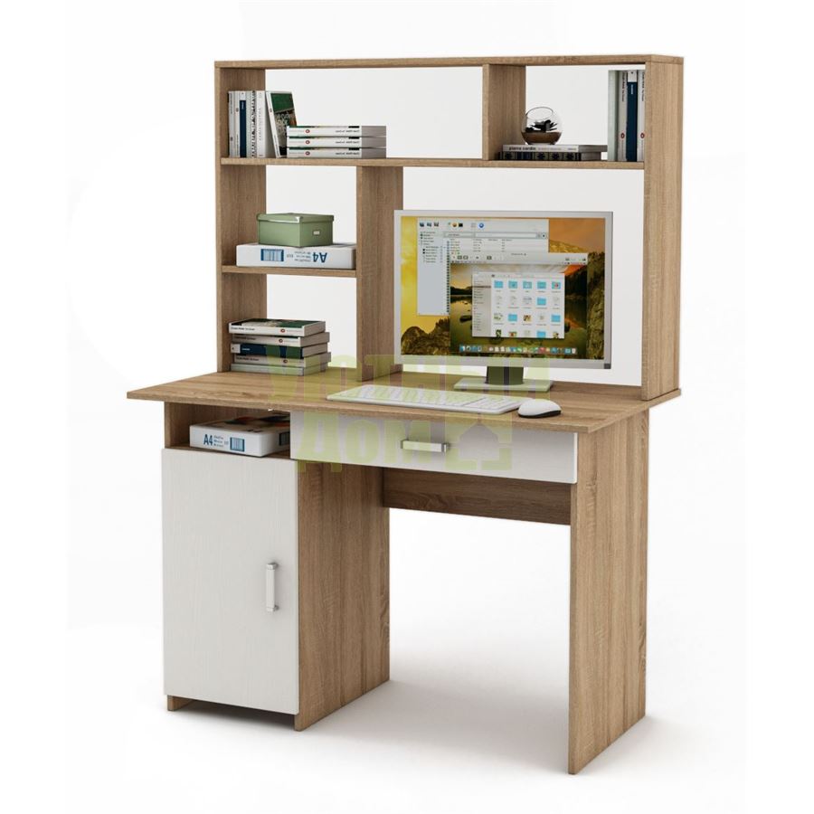 Купить Письменный стол Лайт-2Я с надстройкой-Дуб-сонома/Белый