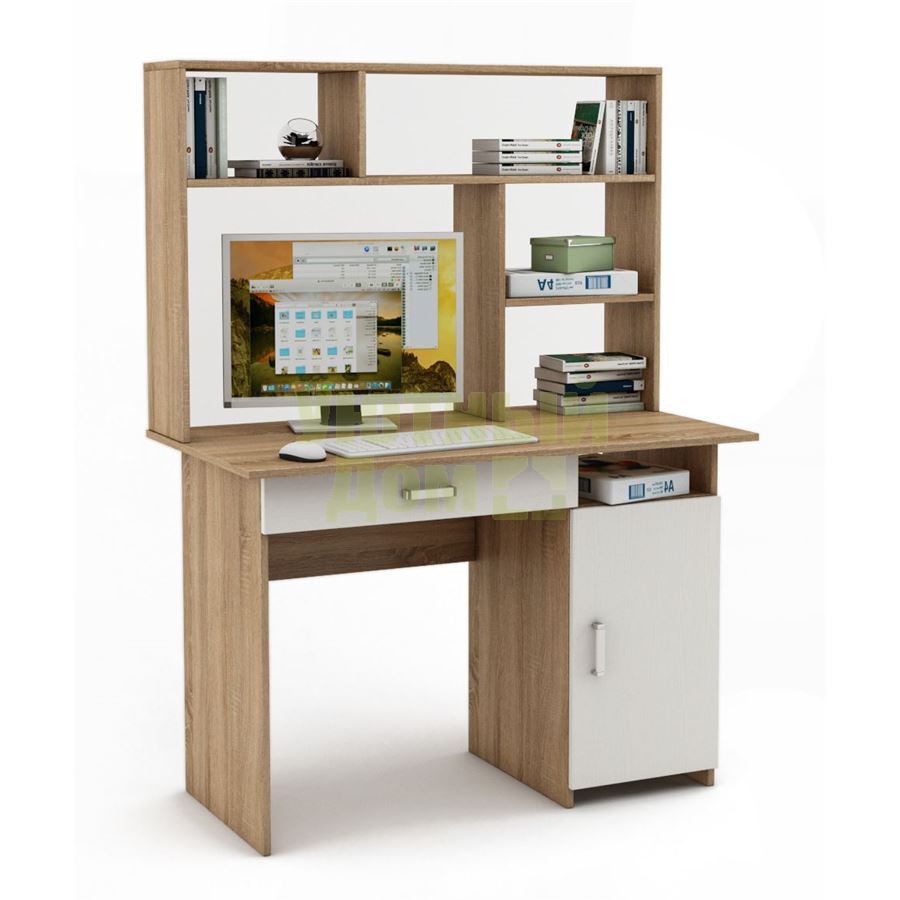 Купить Письменный стол Лайт-3Я с надстройкой-Дуб-сонома/Белый