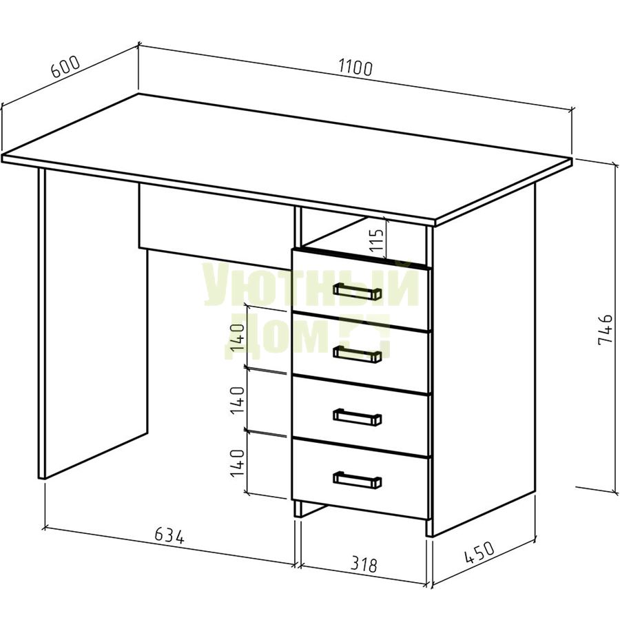 Цвет изделия: дуб молочный; Ширина: 110; Глубина: 60; Высота: 74,6 ; Материал каркаса: ЛДСП; Материал столешницы: ЛДСП; Вес: 32 кг; Объем: 0.08 м3; Форма поставки: В разобранном виде; Количество упаковок: 2; Гарантия производителя : 12 месяцев; Производитель: Россия