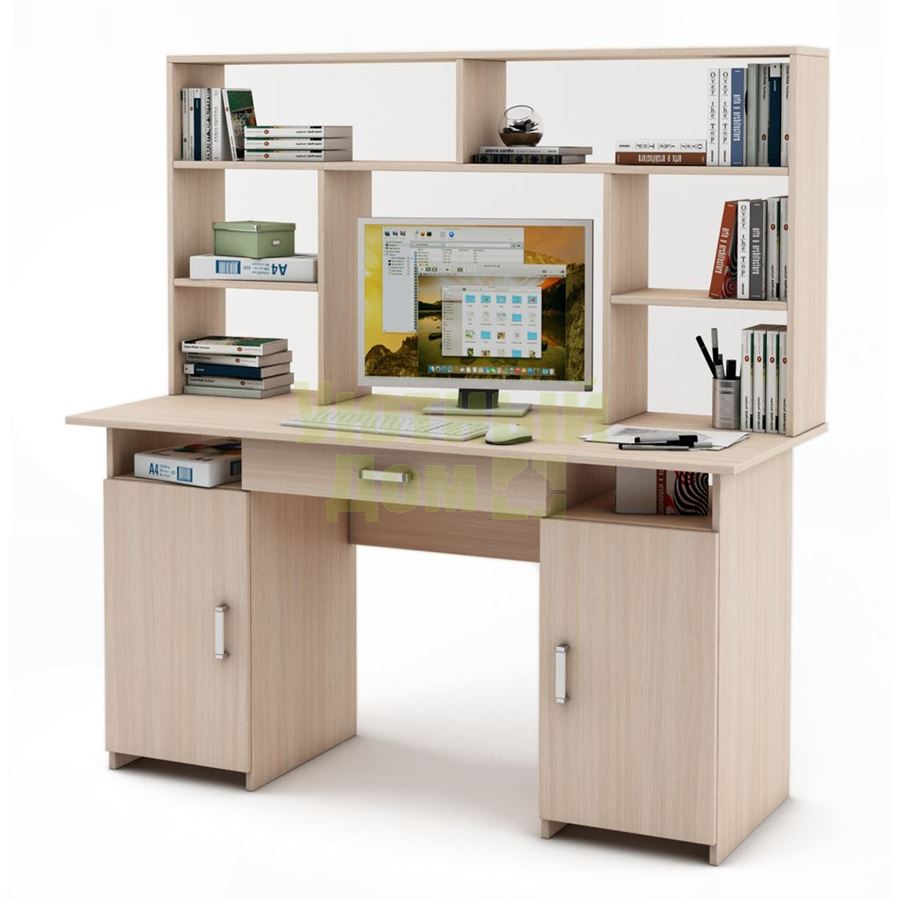 Купить Письменный стол Лайт-6Я с надстройкой-Дуб-молочный