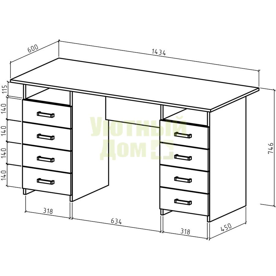 Цвет изделия: дуб молочный; Ширина: 143,4 ; Глубина: 60; Высота: 74,6 ; Материал каркаса: ЛДСП; Материал столешницы: ЛДСП; Вес: 51 кг; Объем: 0.1 м3; Форма поставки: В разобранном виде; Количество упаковок: 3; Гарантия производителя : 12 месяцев; Производитель: Россия