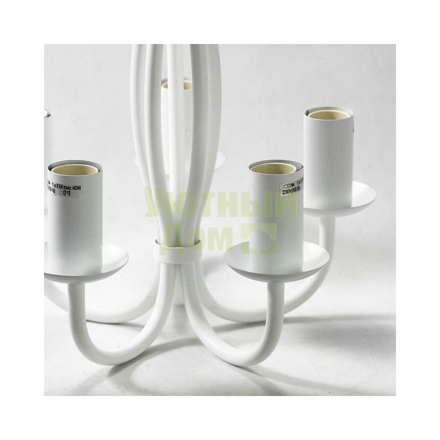 Гарантия, месяцы: 24; Диапазон рабочих температур: +1-[+35]; Класс электробезопасности: I; Материал арматуры: металл; Напряжение питания лампы, В: 220; Основной материал арматуры: металл; Степень пылевлагозащиты, IP: 20; Основной цвет арматуры: белый; Поверхность арматуры: матовый; Тип цоколя лампы: E14; Тип цоколя лампы основной: E14; Цвет арматуры: белый; Стиль: классический; Общее кол-во ламп: 5; Возможность подключения диммера: нельзя; Лампы ...