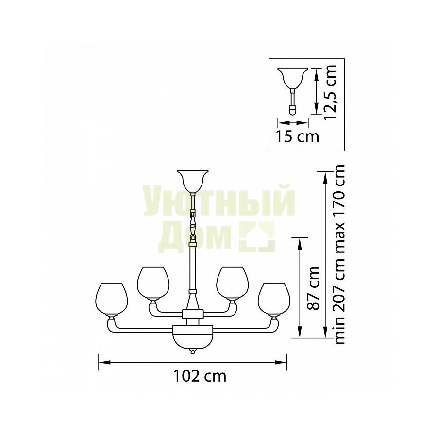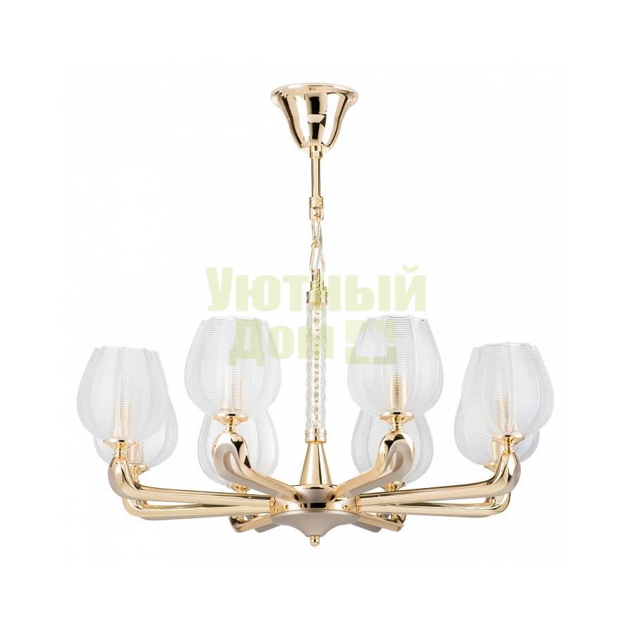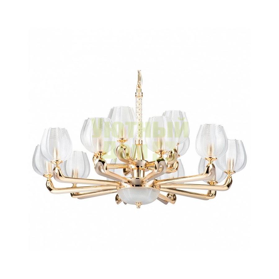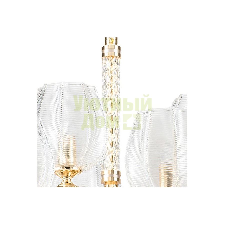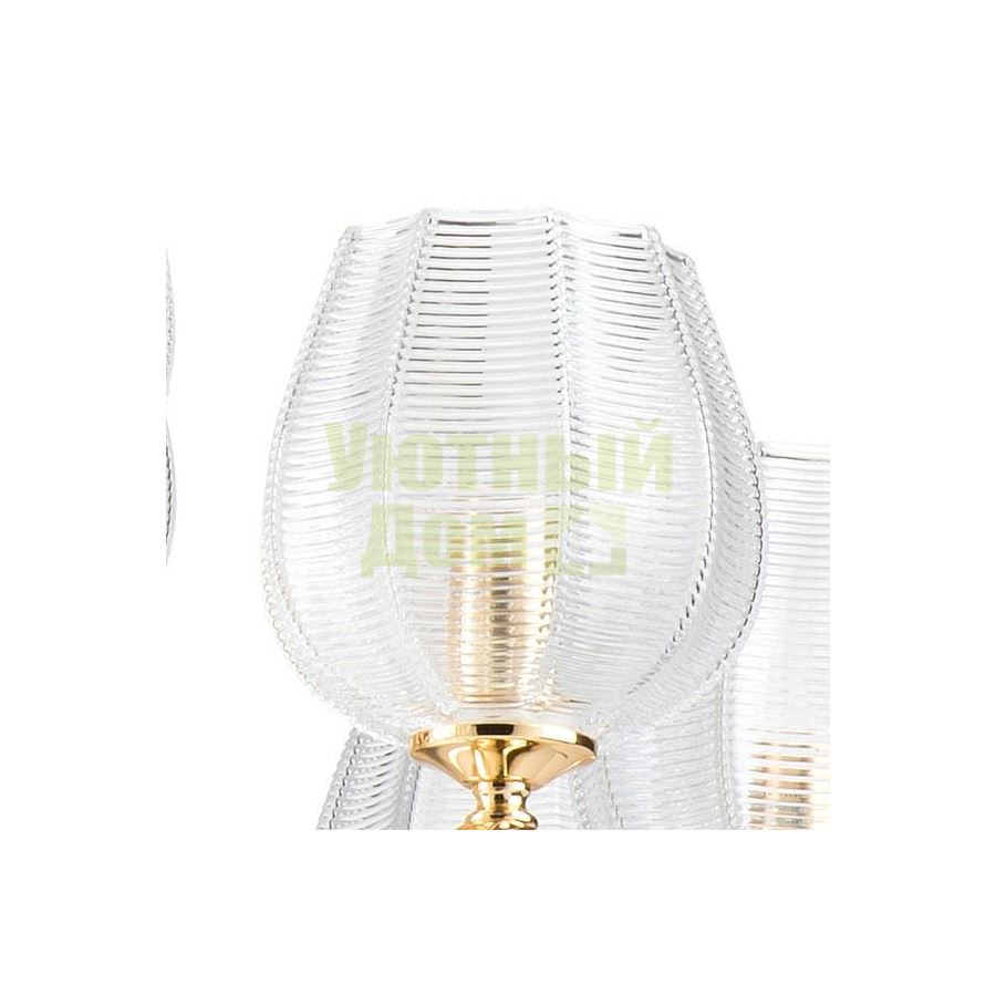 Возможность подключения диммера: можно, если установить лампу накаливания; Гарантия, месяцы: 24; Диапазон рабочих температур: +1-[+35]; Класс электробезопасности: I; Лампы в комплекте: отсутствуют; Максимальная мощность лампы, Вт: 40; Материал арматуры: металл; Материал плафонов и подвесок: стекло; Напряжение питания лампы, В: 220; Основной материал арматуры: металл; Основной материал плафонов: стекло; Основной цвет арматуры: золото; Основной цве...