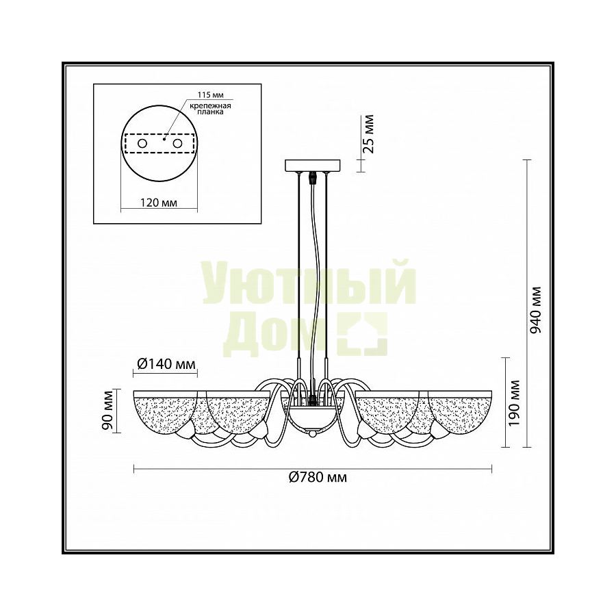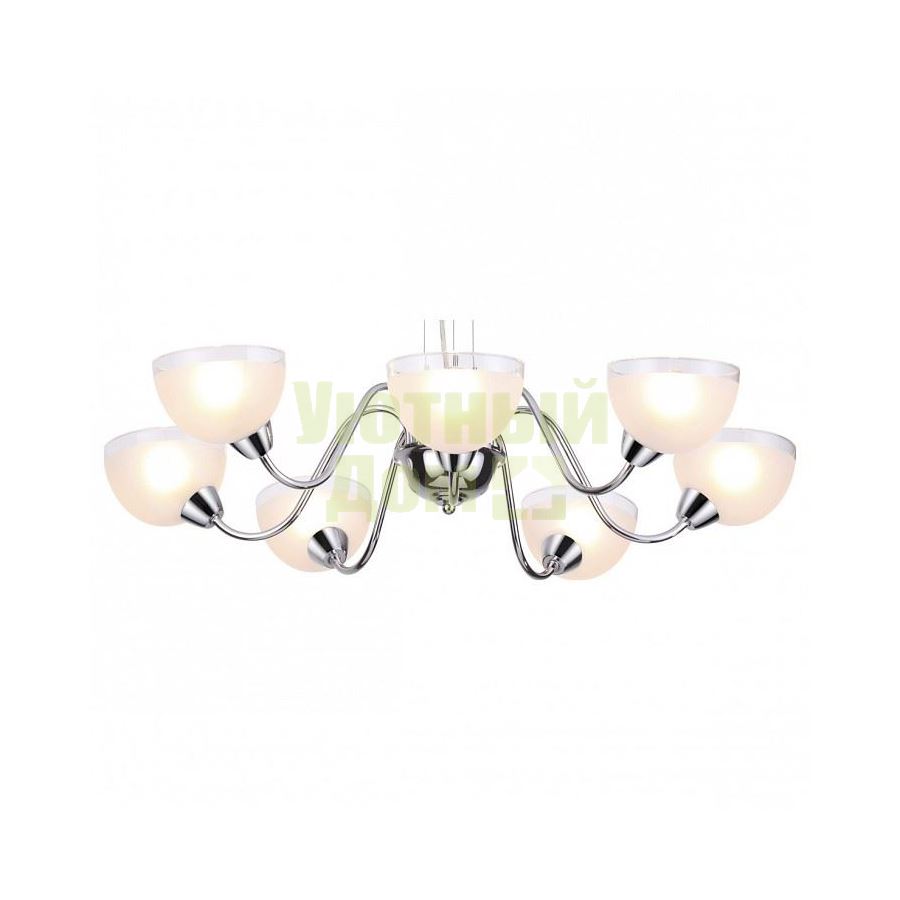 Возможность подключения диммера: можно, если установить лампу накаливания; Гарантия, месяцы: 24; Диапазон рабочих температур: +1-[+35]; Класс электробезопасности: I; Лампы в комплекте: отсутствуют; Материал арматуры: металл; Материал плафонов и подвесок: стекло; Напряжение питания лампы, В: 220; Основной материал арматуры: металл; Основной материал плафонов: стекло; Степень пылевлагозащиты, IP: 20; Стиль: модерн; Тип лампы: накаливания ИЛИ светод...